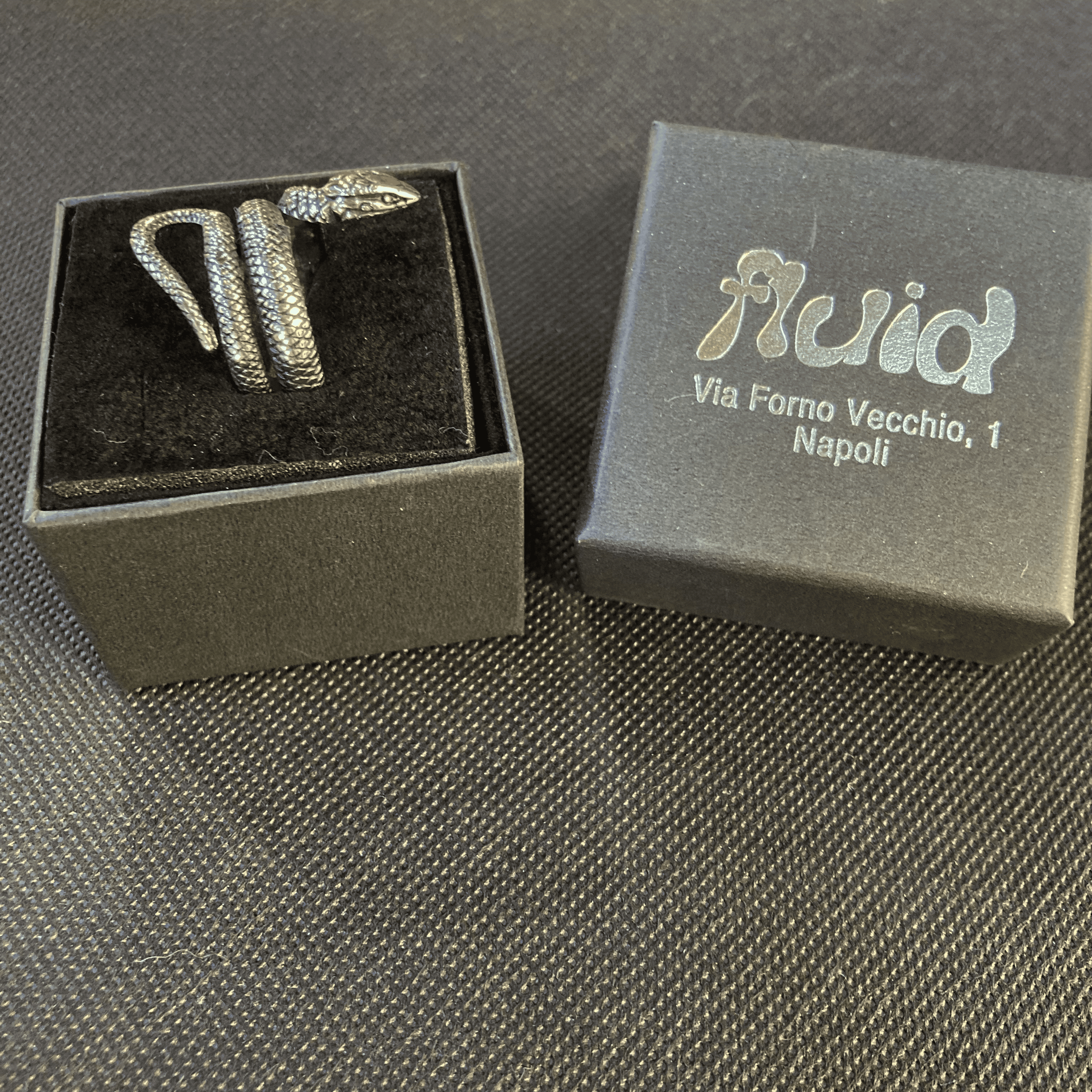 Anello serpente in acciaio con design avvolgente che riproduce le spire di un serpente attorno al dito. Simbolo di trasformazione e saggezza presente in tutte le culture del mondo.