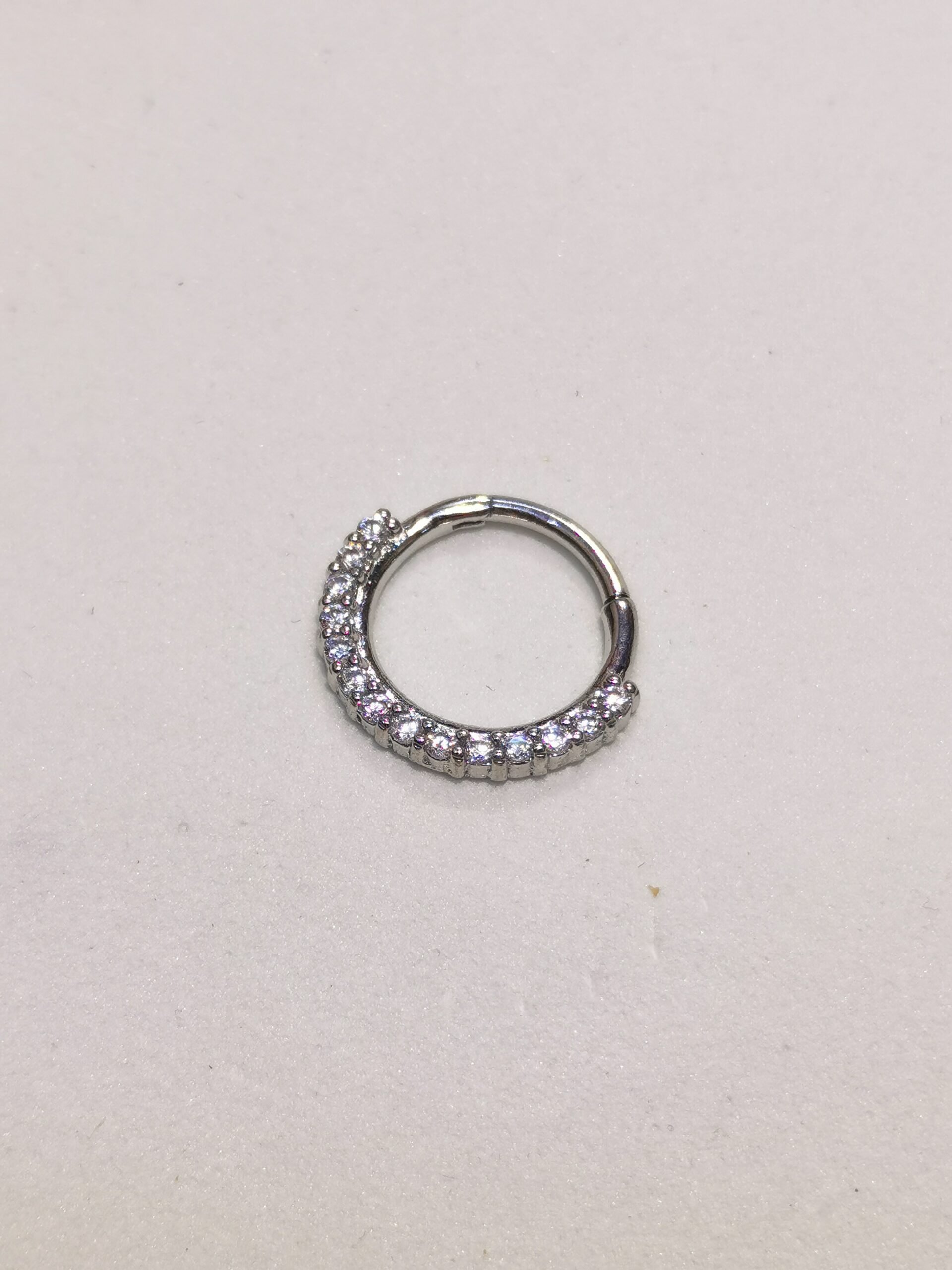 Brilla come una stella con questo sontuoso septum con coroncina tempestata di cristalli. I cristalli catturano ogni raggio di luce trasformando il tuo naso in un punto focale scintillante.