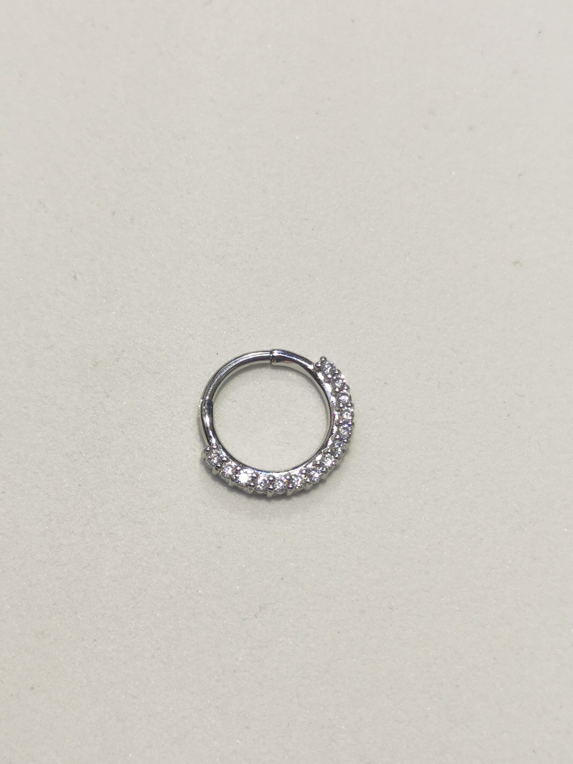 Questo septum in acciaio chirurgico 316L presenta una coroncina dove ogni punta è coronata da un cristallo sfaccettato. L’effetto è quello di un gioiello prezioso che incornicia il tuo viso con eleganza.