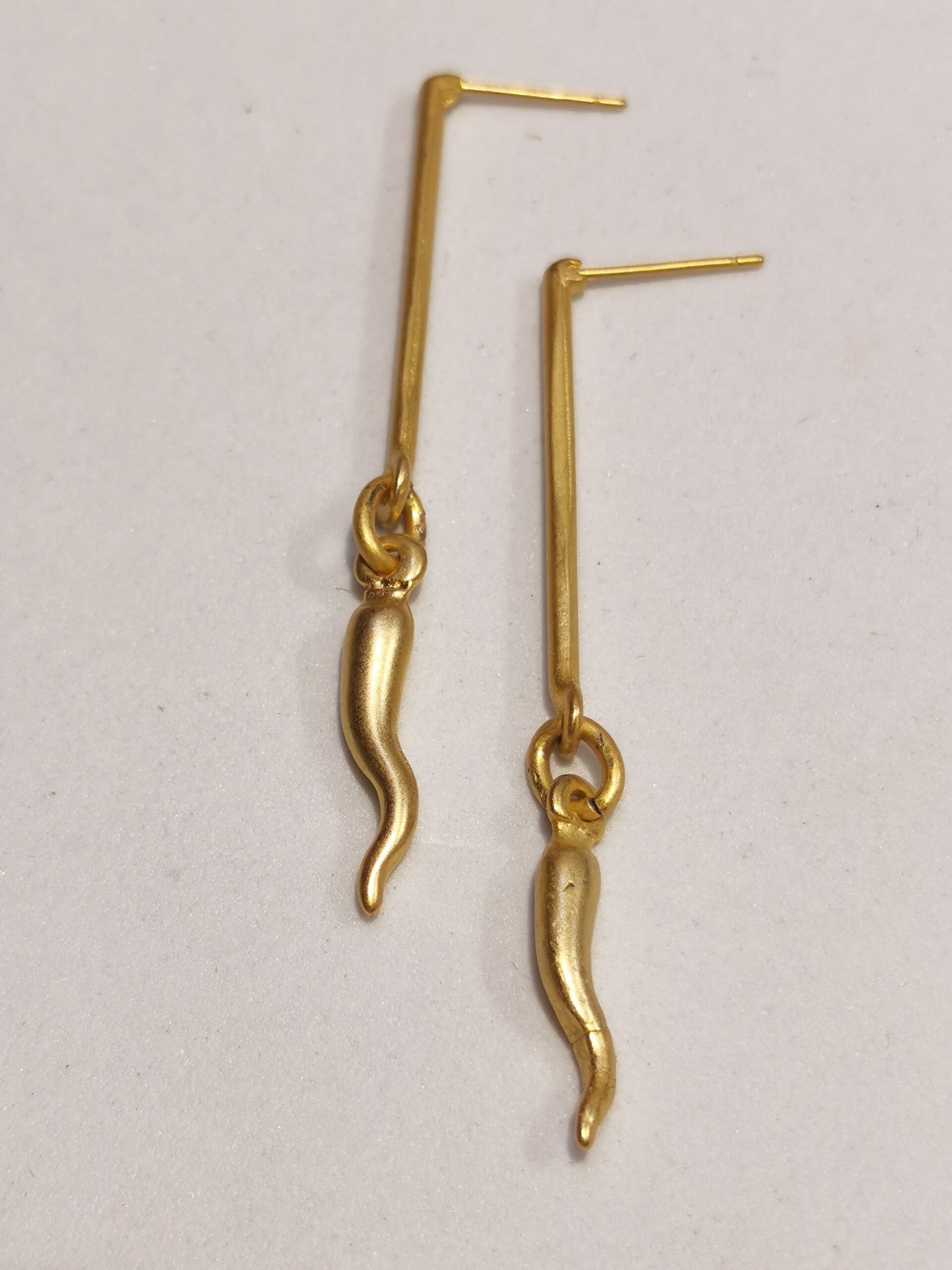 Questi Orecchini lunghi barretta con cornetto pendente incarnano l’essenza dello stile contemporaneo. Realizzati in lega di zama con una raffinata finitura dorata che cattura la luce, questi orecchini nascono dalla sapiente lavorazione artigianale che caratterizza ogni nostra creazione. Il design è stato pensato per chi desidera accessori capaci di raccontare una storia, pezzi unici che sanno farsi notare senza mai risultare eccessivi.