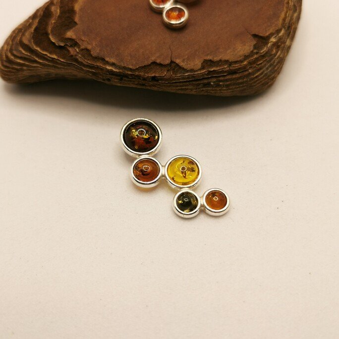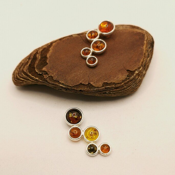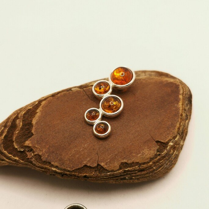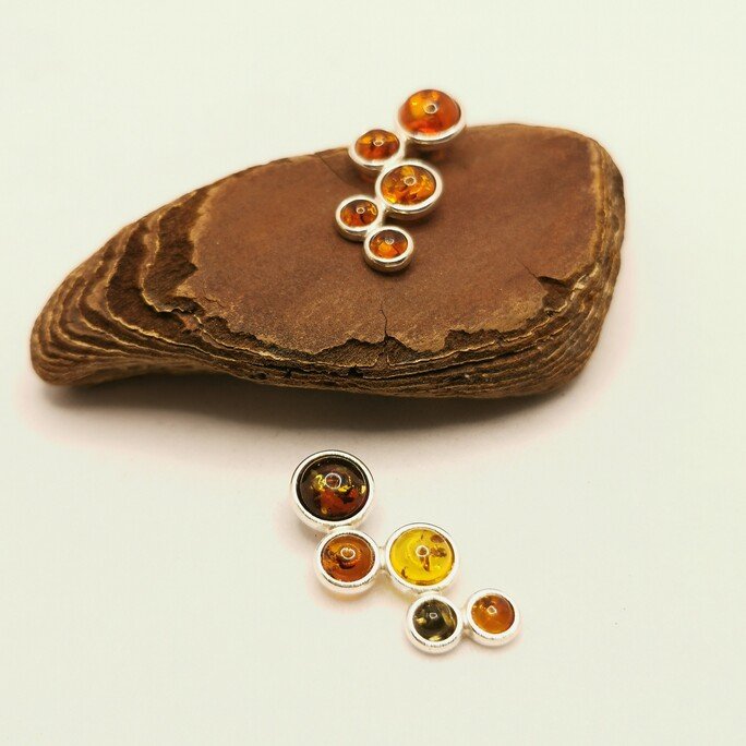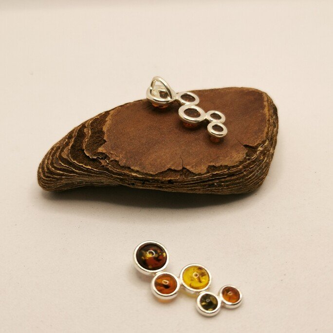 Le bolle d’ambra sembrano danzare nello spazio, sostenute dall’argento 925 925 in una composizione dinamica e allegra.