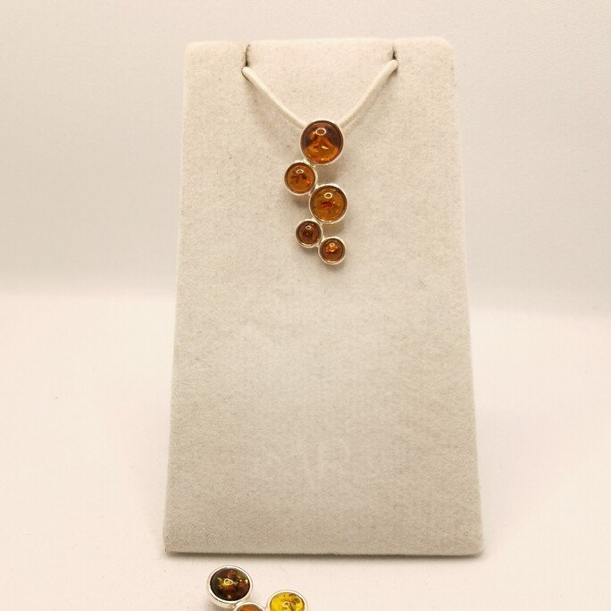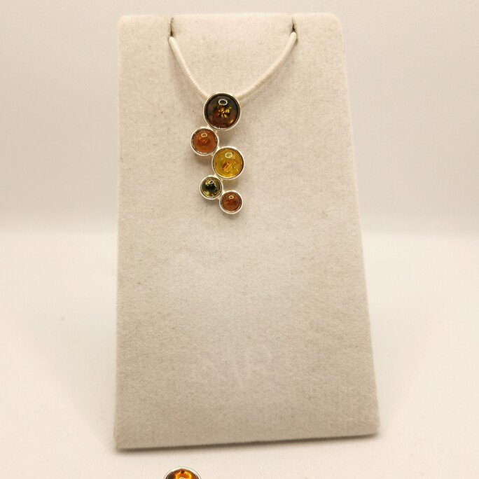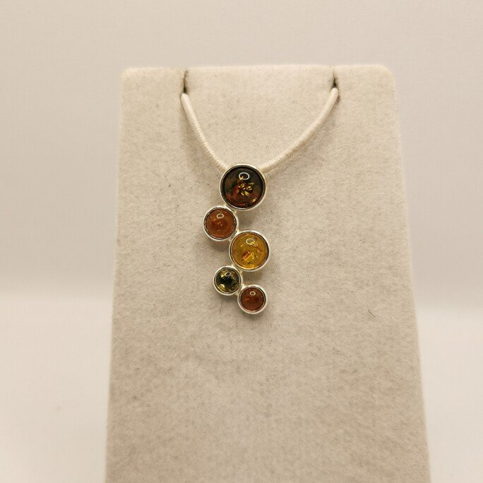 Come bolle di sapone dorato: questo ciondolo presenta multiple Ambre Baltiche di diverse dimensioni che creano un effetto giocoso e luminoso.