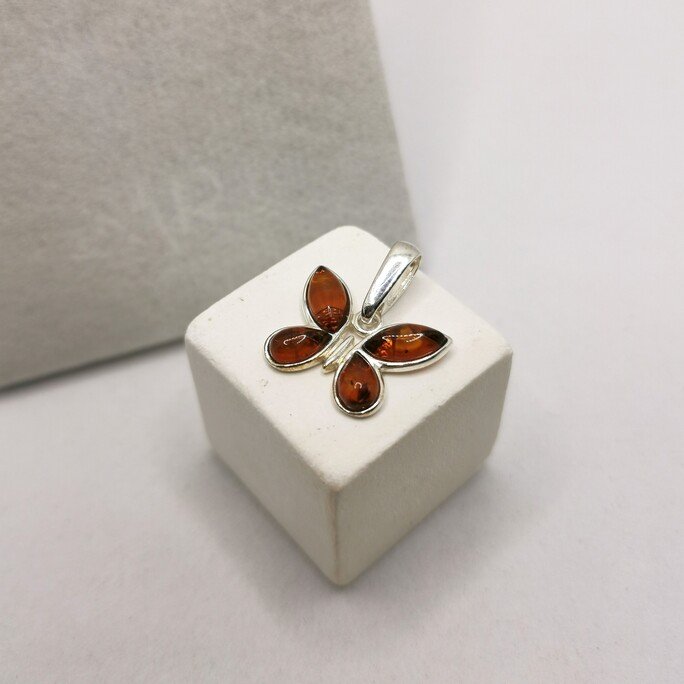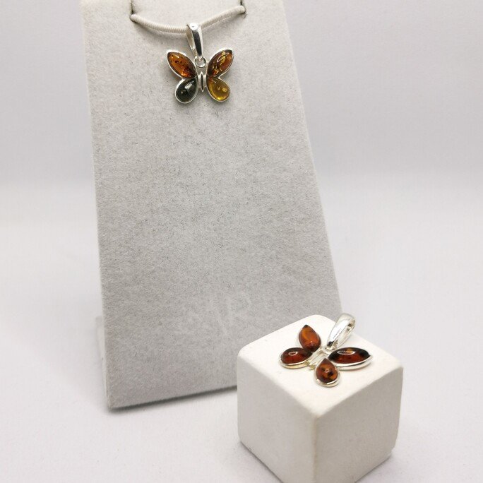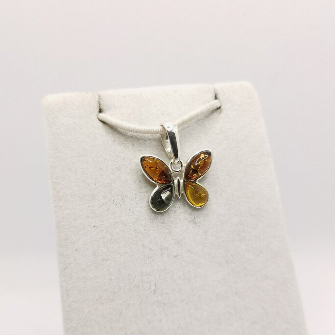 La farfalla è il simbolo per eccellenza della trasformazione: questo ciondolo cattura quella magia in ali d’Ambra Baltica che sembrano fremere per il volo.