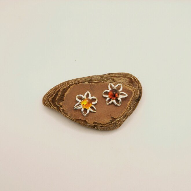 I petali d’ambra catturano la luce come fiori veri al sole. L’argento 925 925 forma il centro e il gambo del fiore, completando il design naturalistico.