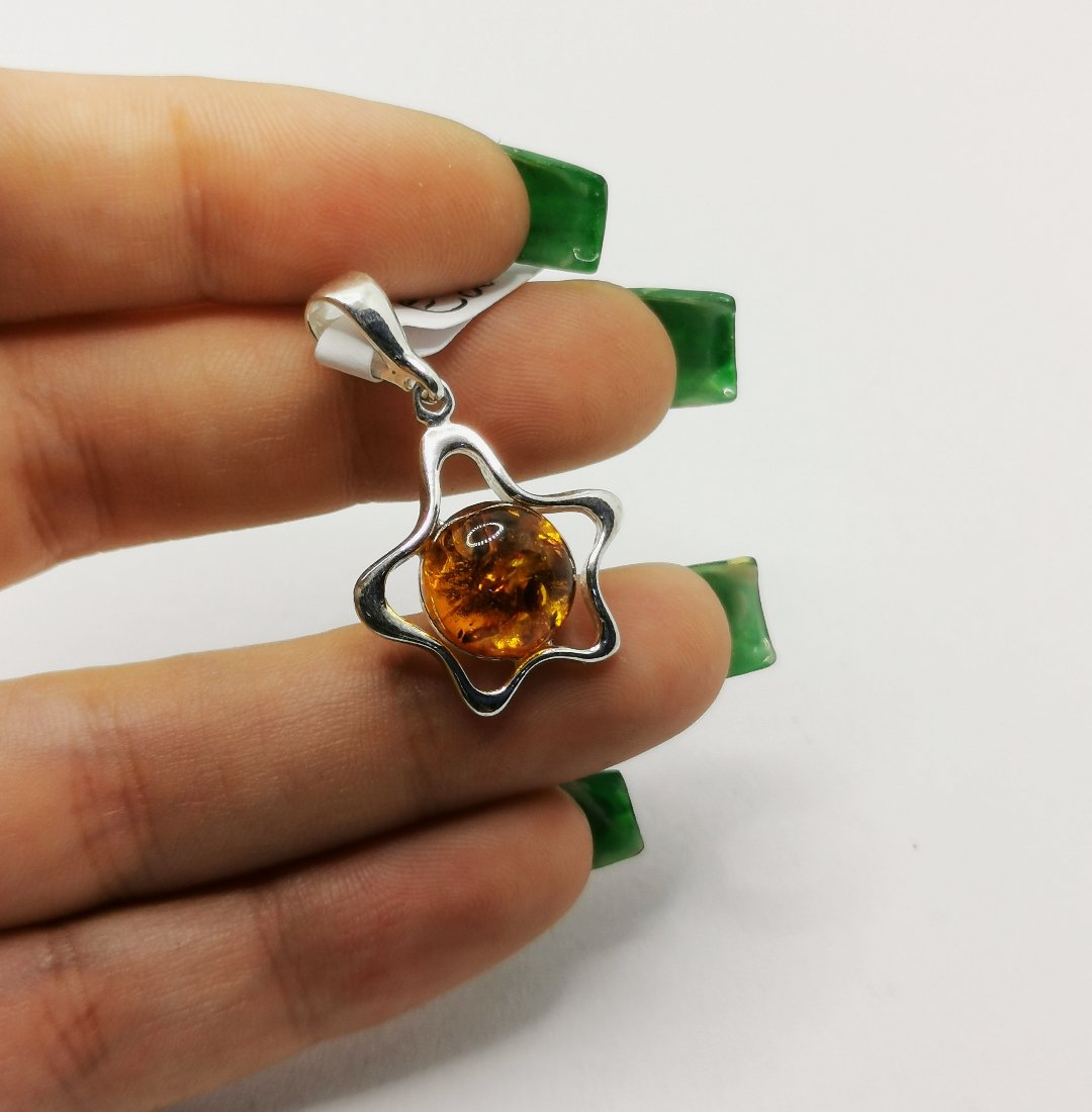 Ciondolo Stella in Ambra Baltica e argento 925.