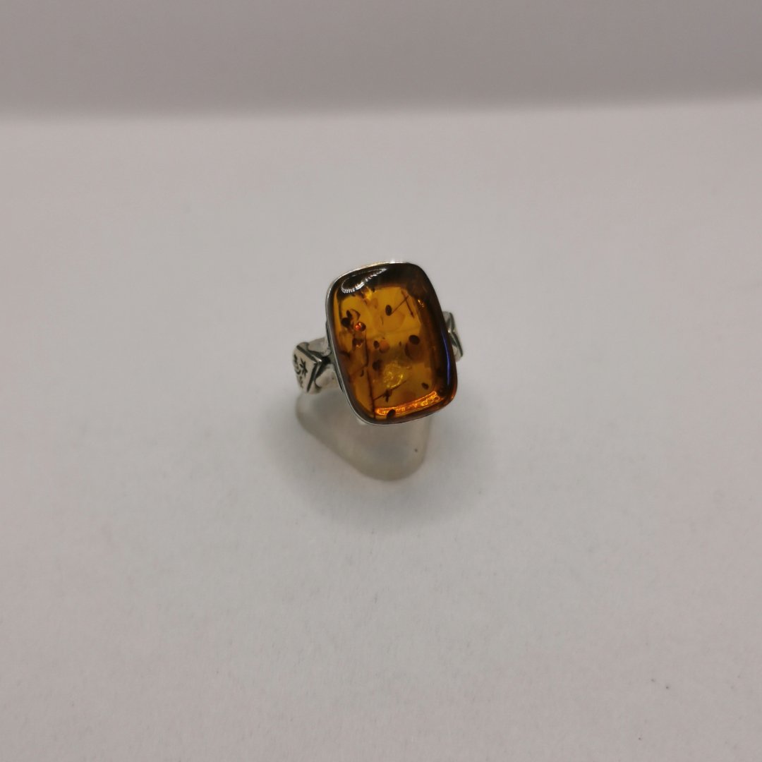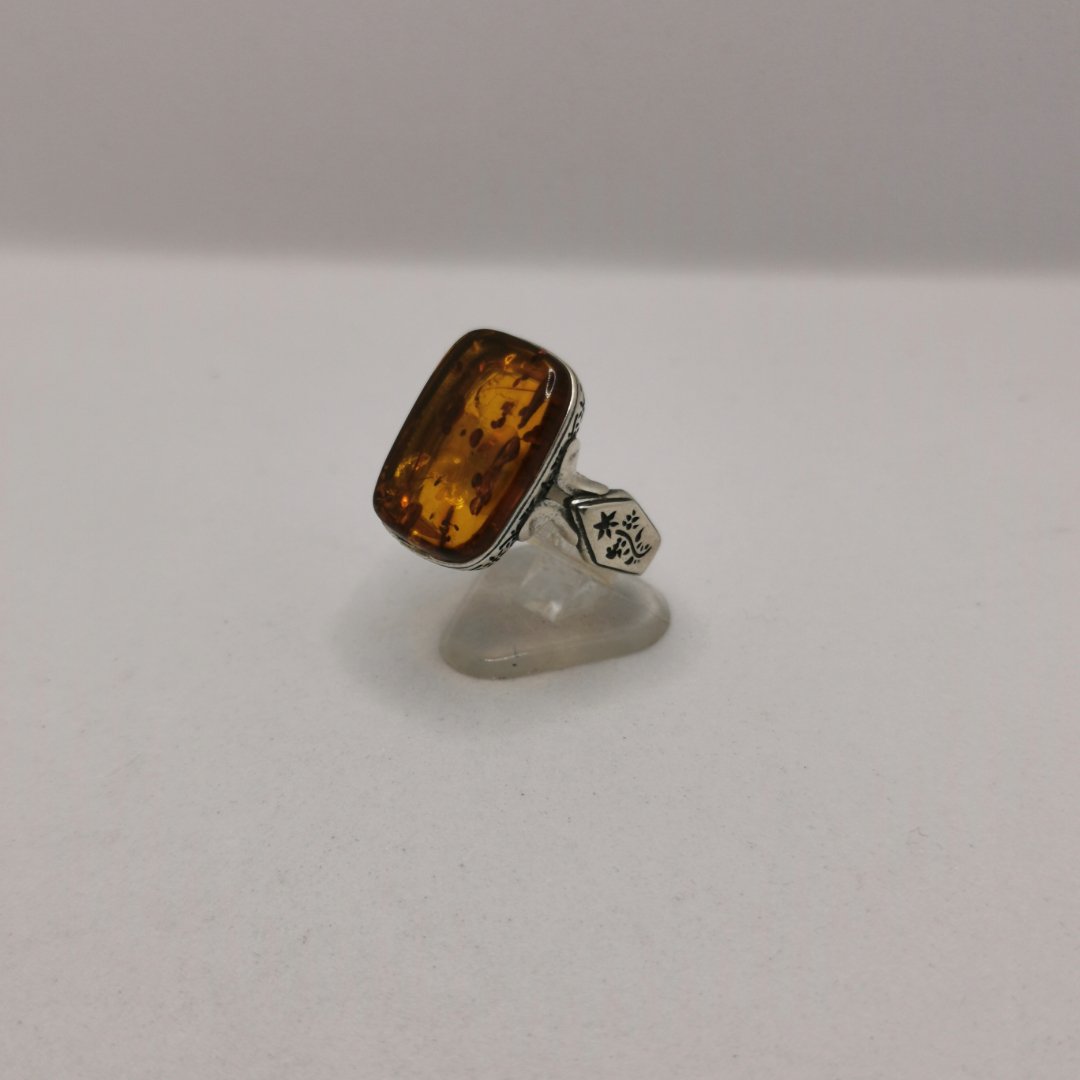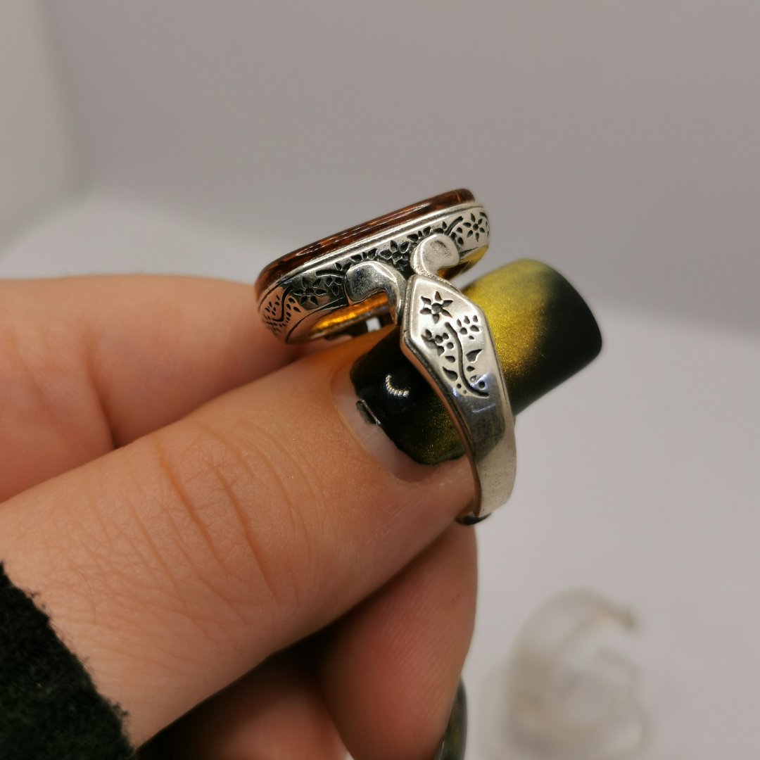La natura è il miglior artista: questo anello presenta un’Ambra Baltica con sfumature multiple, un gradiente naturale che passa dal giallo all’arancio al cognac.
