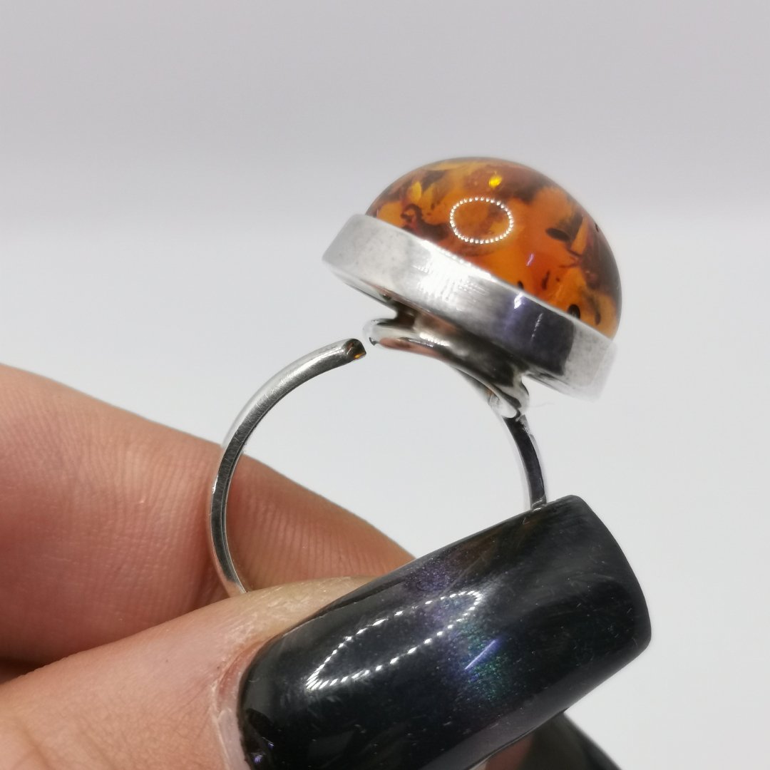 anello in argento con ambra naturale in argento 925. Misura regolabile. Gioiello di qualità per chi cerca eleganza e raffinatezza italiana.