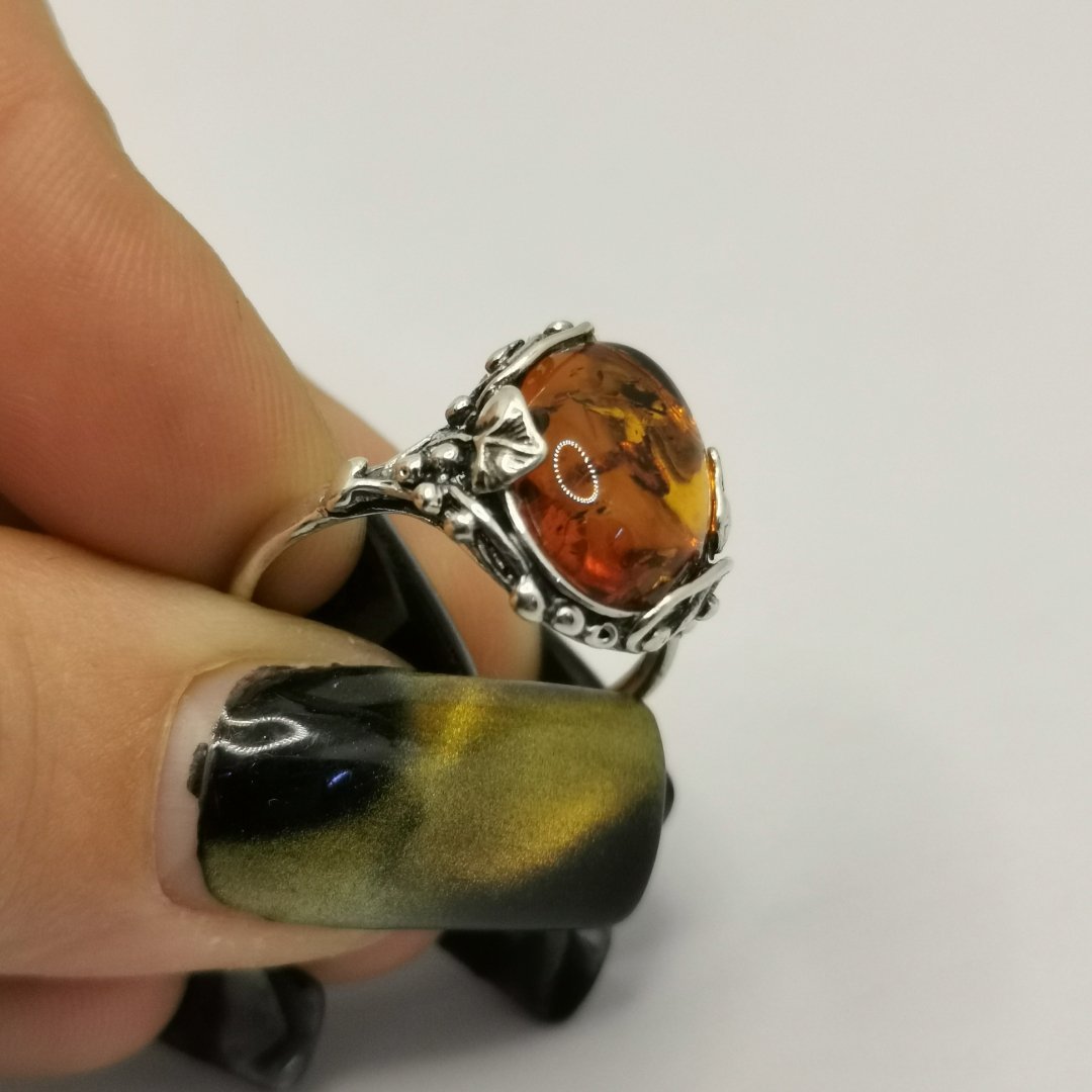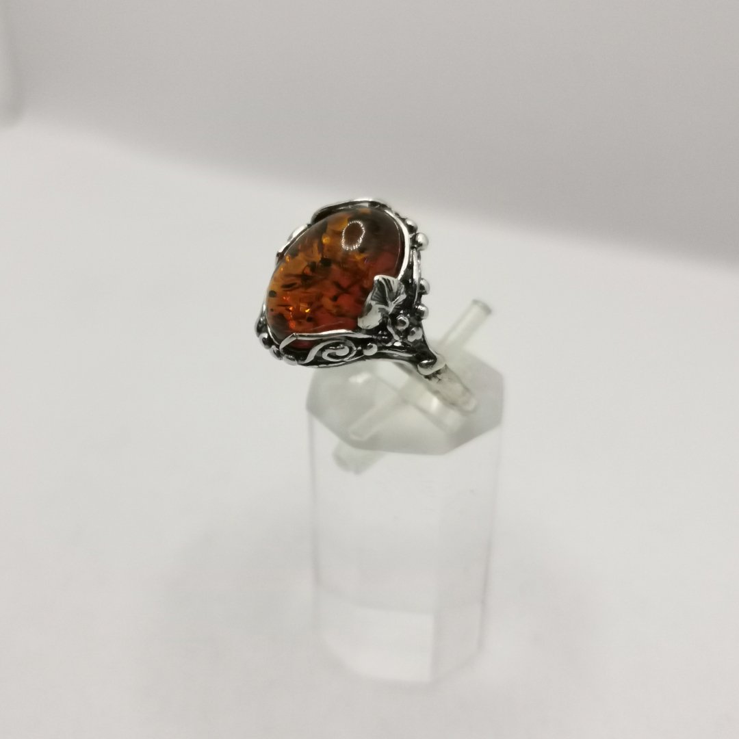 Anello Ambra Baltica cabochon ovale argento.