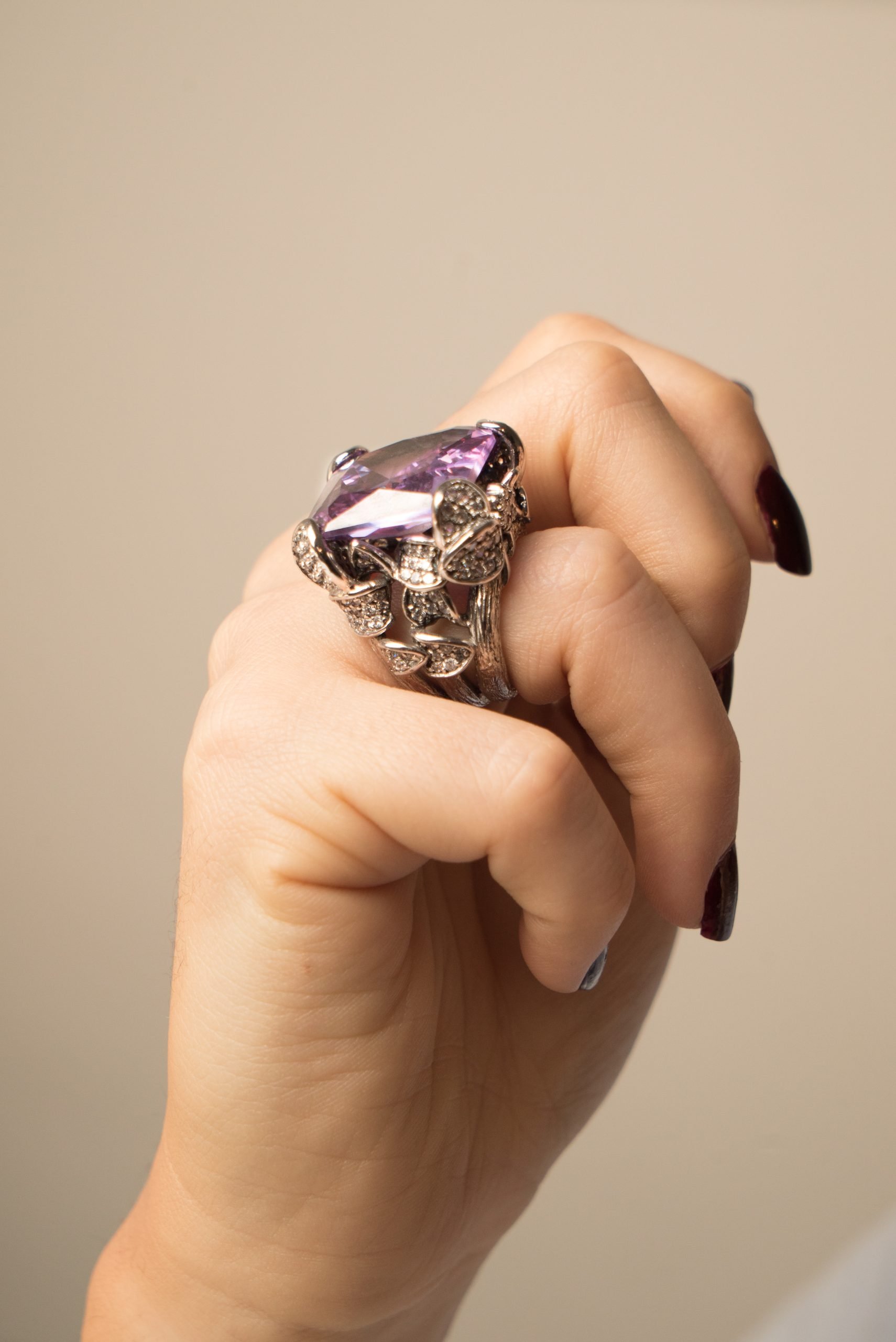 anello in argento con ametista naturale in argento 925. Gioiello di qualità per chi cerca eleganza e raffinatezza italiana. Design elegante e raffinato per ogni occasione.
