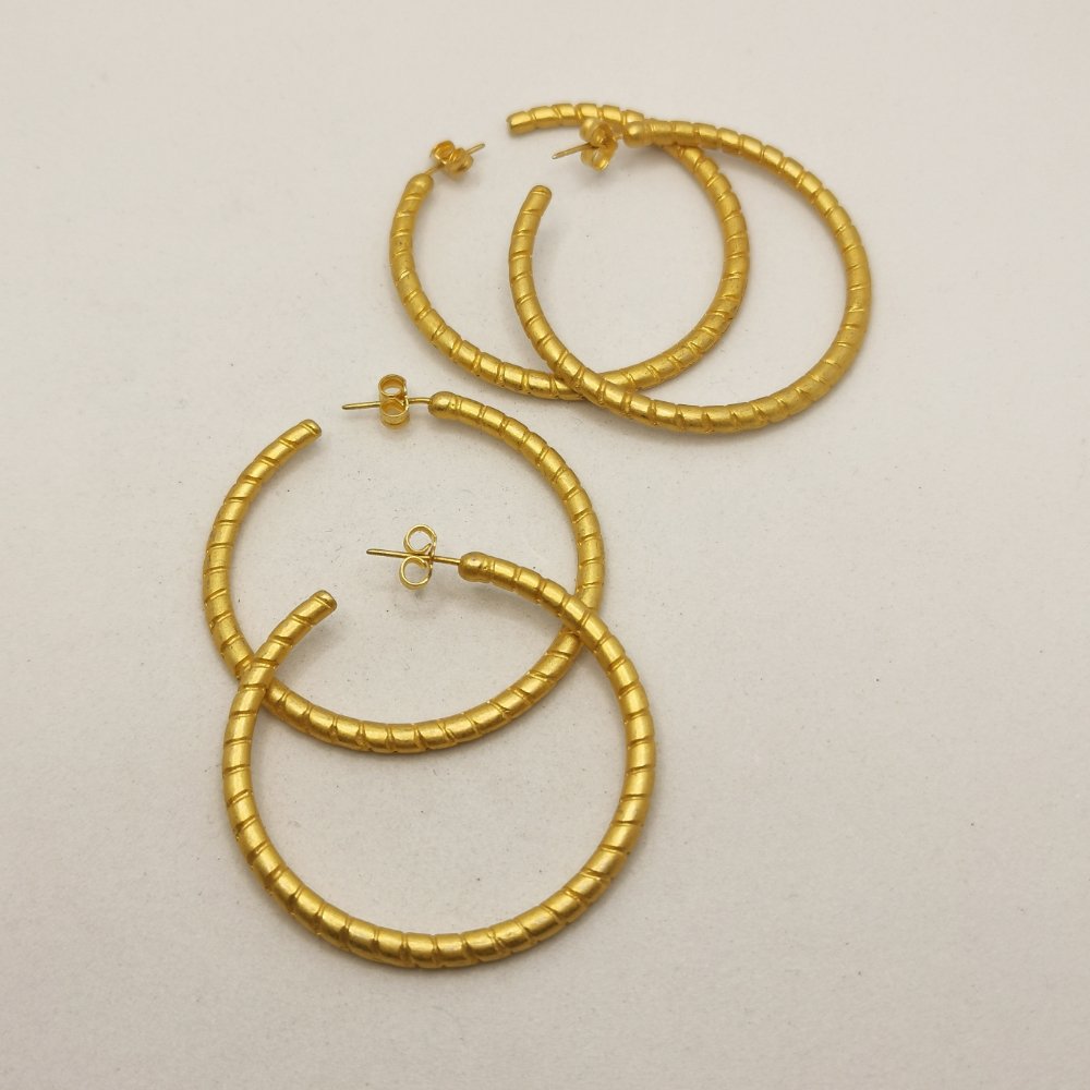 Questi Bike wheels hoops incarnano l’essenza dello stile contemporaneo. Realizzati in lega di zama con una raffinata finitura dorata che cattura la luce, questi orecchini nascono dalla sapiente lavorazione artigianale che caratterizza ogni nostra creazione. Il design è stato pensato per chi desidera accessori capaci di raccontare una storia, pezzi unici che sanno farsi notare senza mai risultare eccessivi.