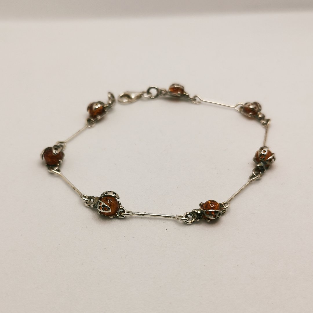 Bracciale Coccinella Ambra portafortuna argento 925.