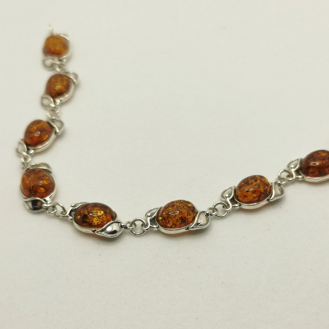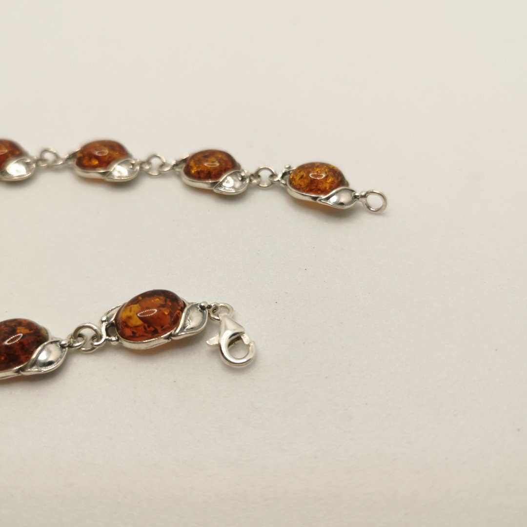 Il glicine è simbolo di devozione e romanticismo. Questo bracciale cattura quel sentimento con gemme d’ambra cabochon che pendono come fiori dal ramo d’argento 925.