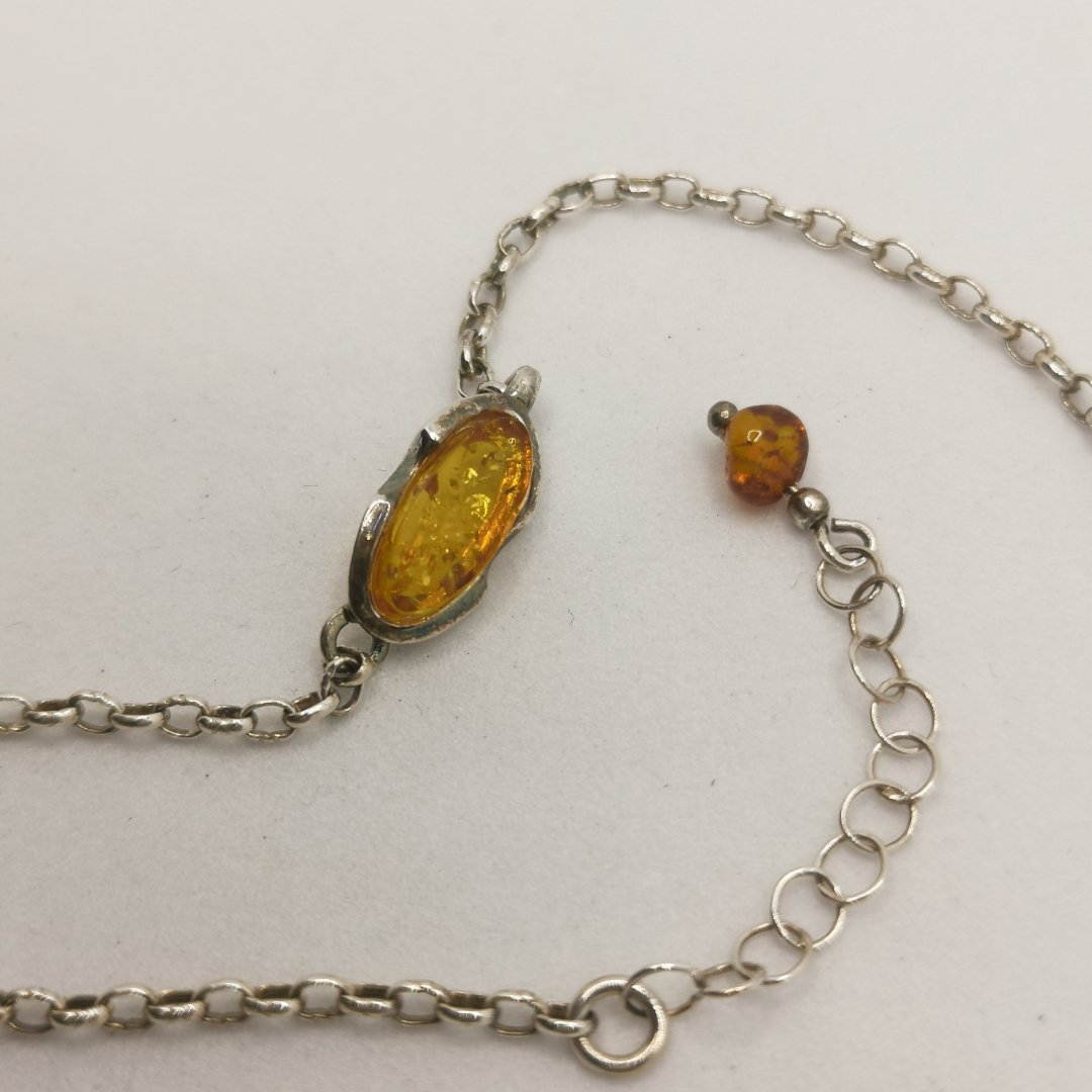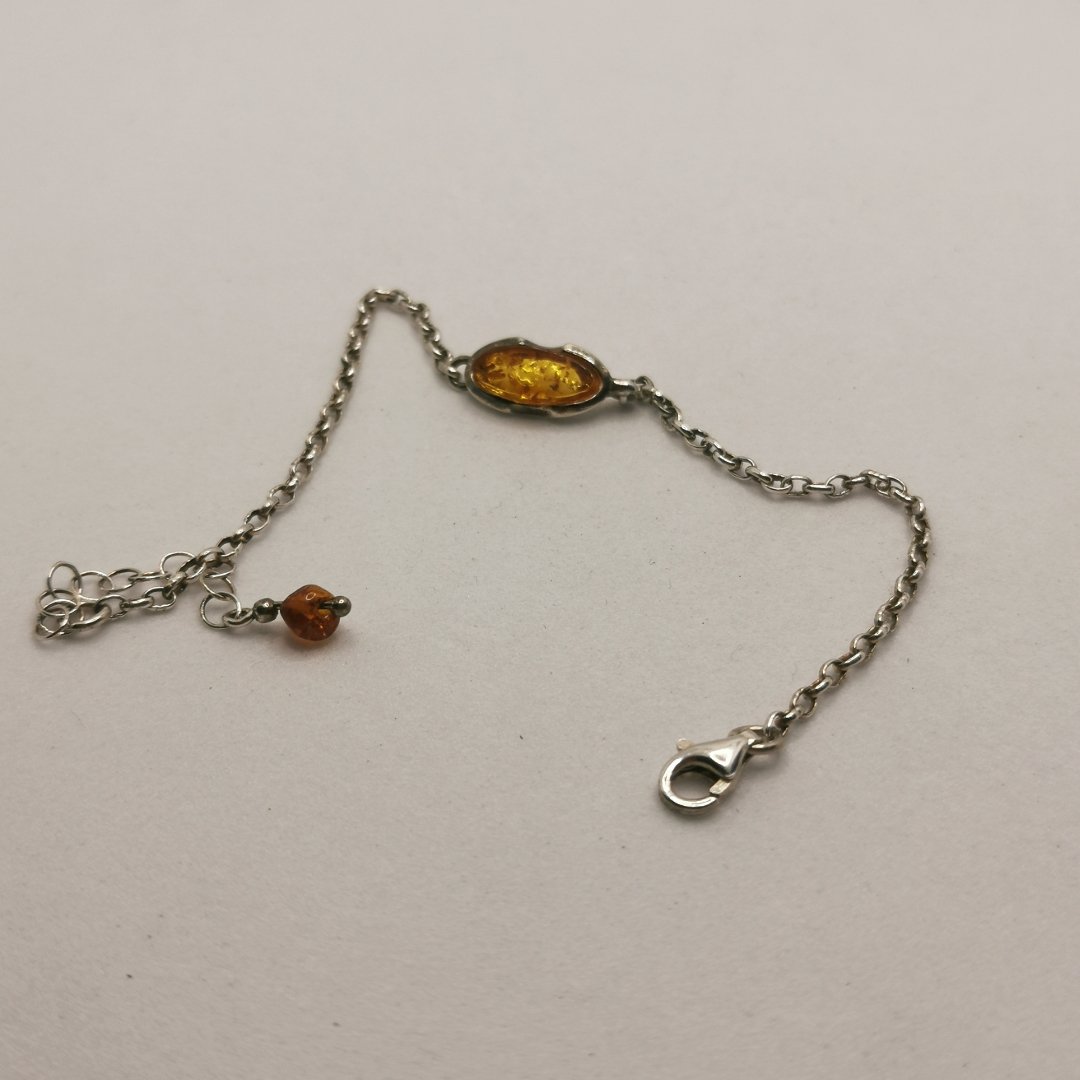 Le gemme d’ambra si susseguono lungo il polso come una collana di luce dorata. L’argento 925 925 le collega creando una struttura elegante e resistente.