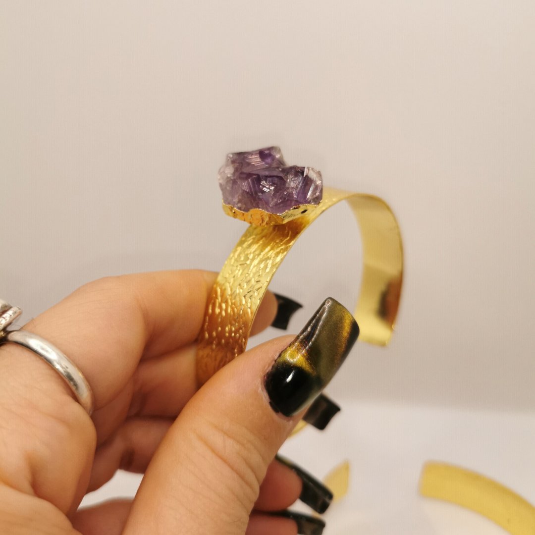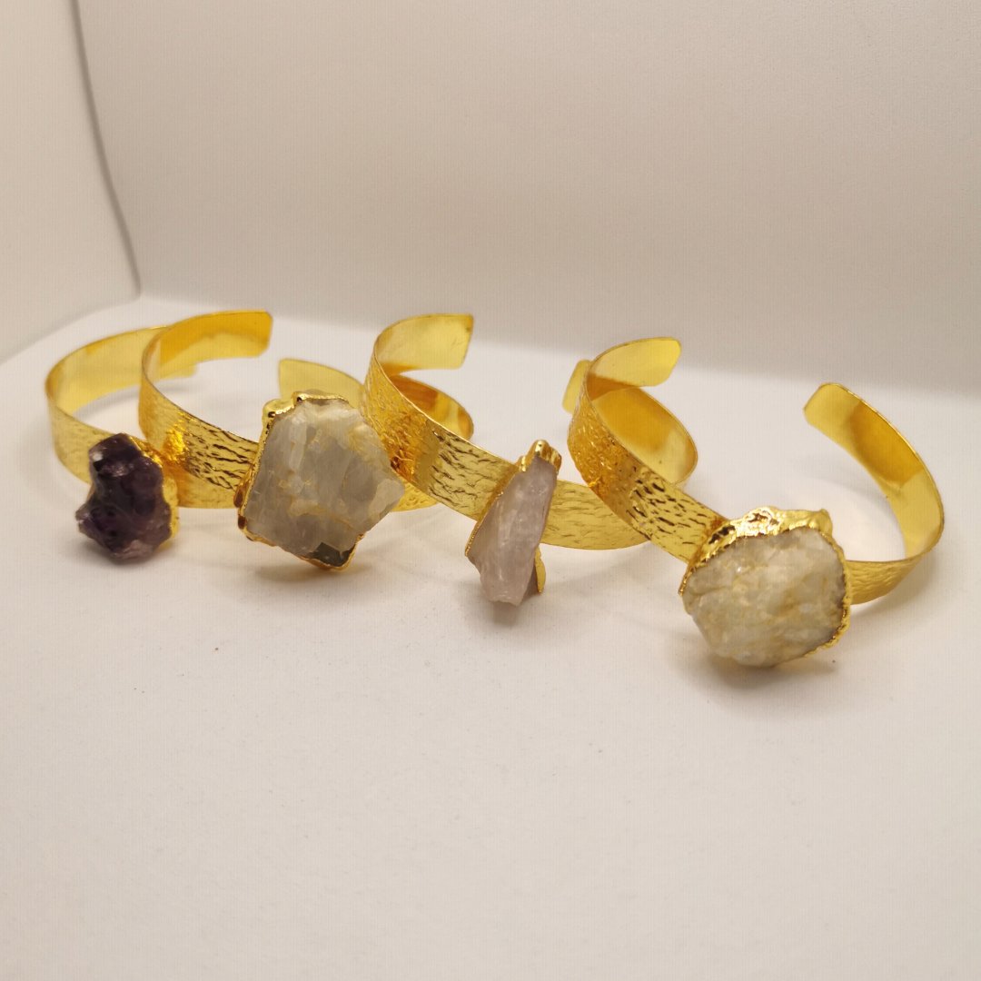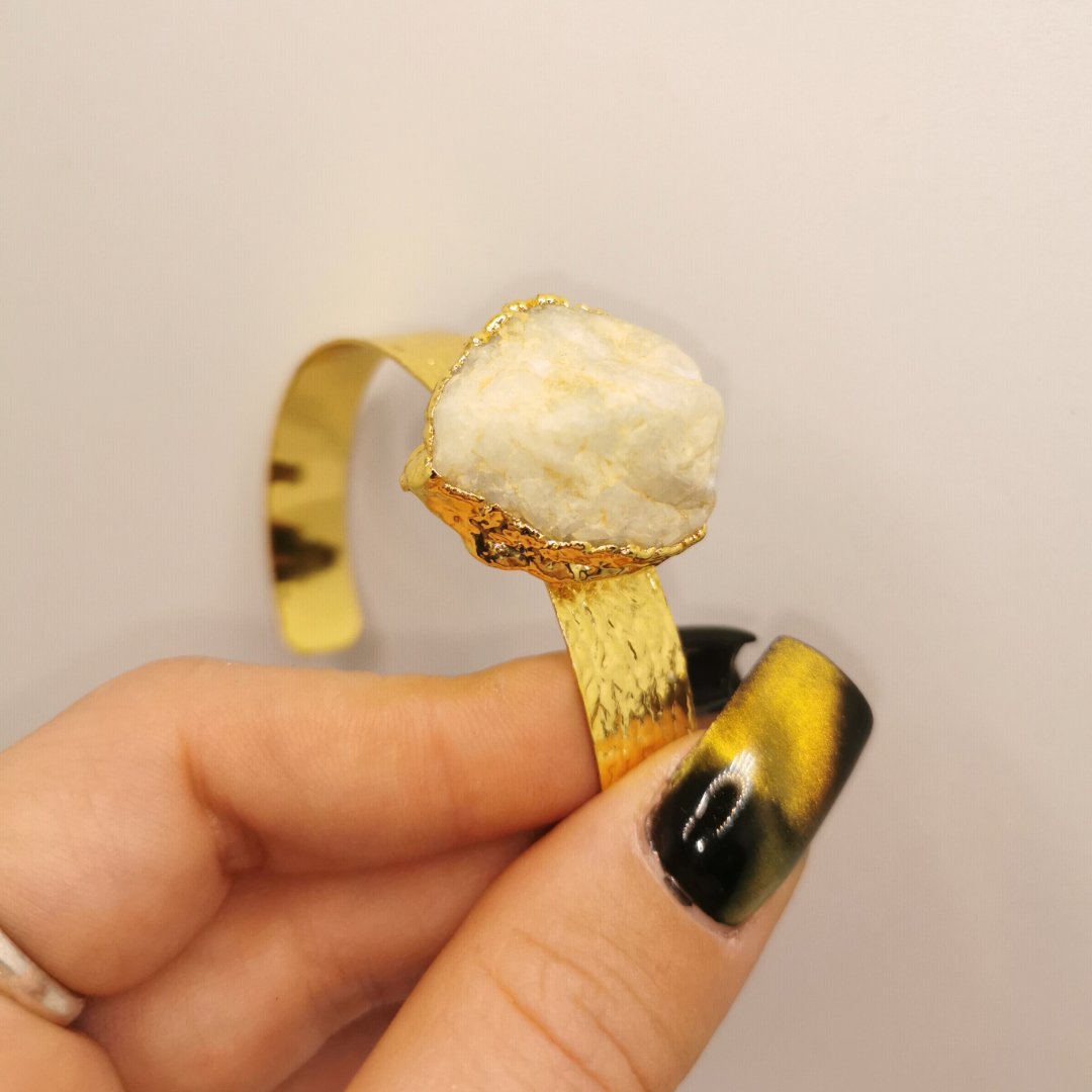 Elegante bracciale in ottone con pietra naturale incastonata. Gioiello artigianale in ottone che unisce il calore del metallo alla bellezza delle gemme.