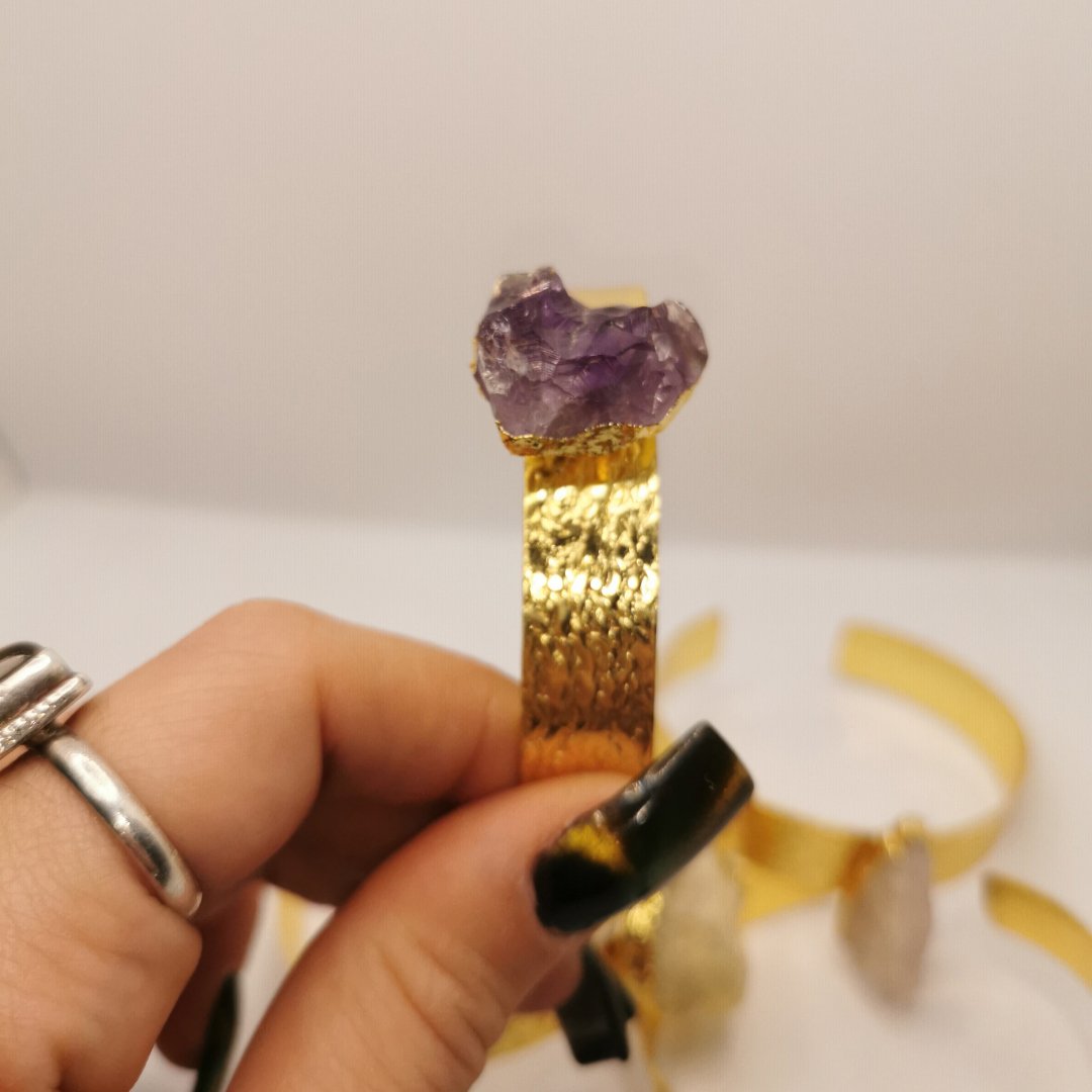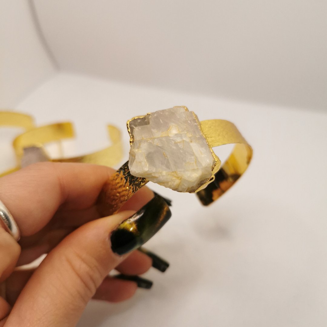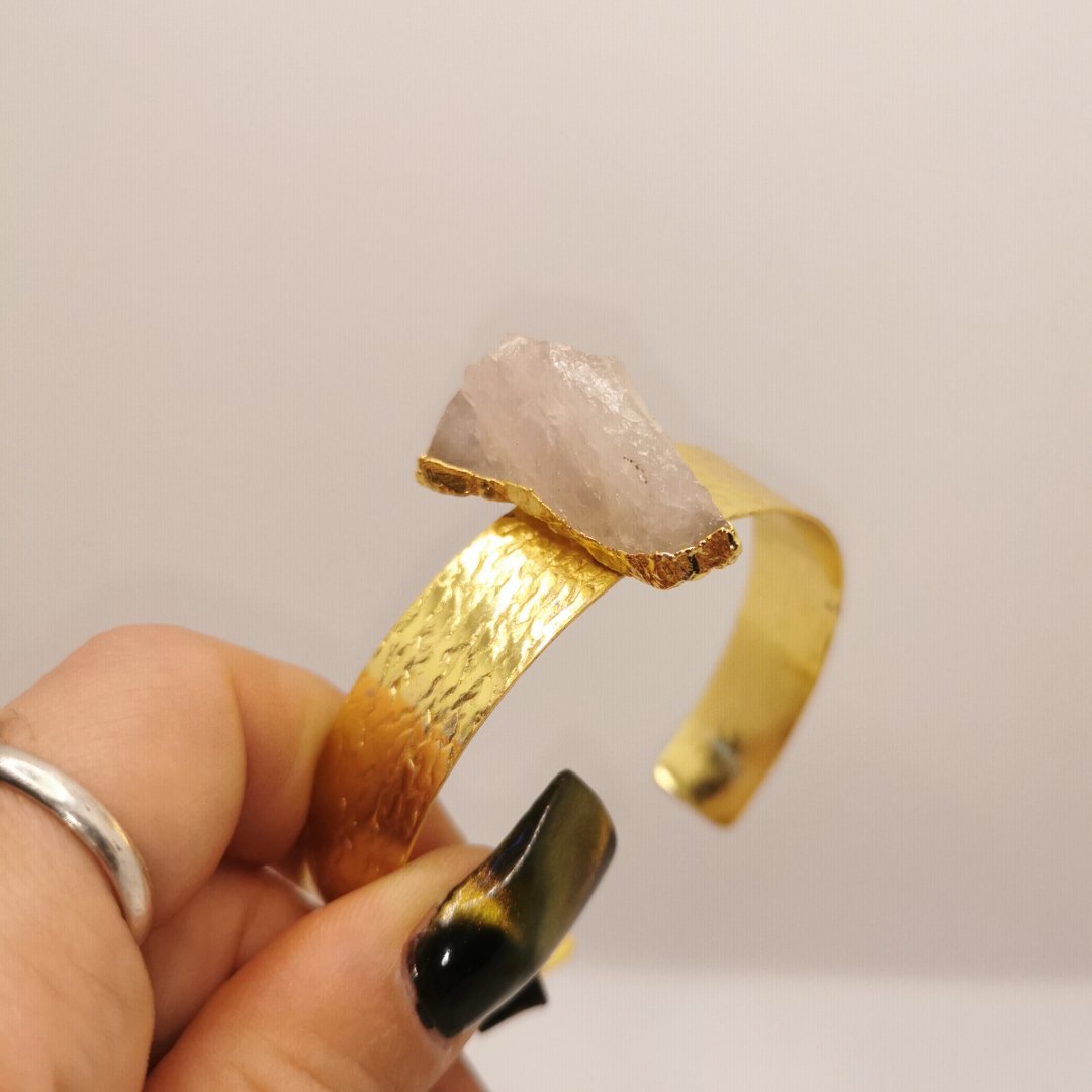 L’ottone lavorato a mano utilizzato per questo bracciale è di qualità superiore e viene modellato con tecniche tradizionali. La montatura è progettata per abbracciare la pietra proteggendola e valorizzandola, creando un equilibrio perfetto tra i due materiali.