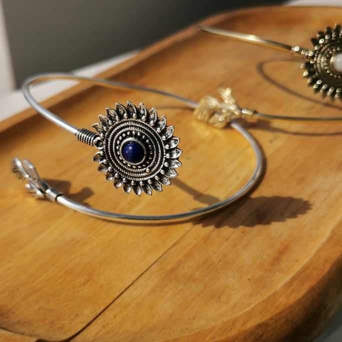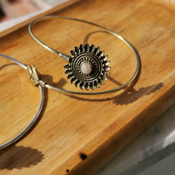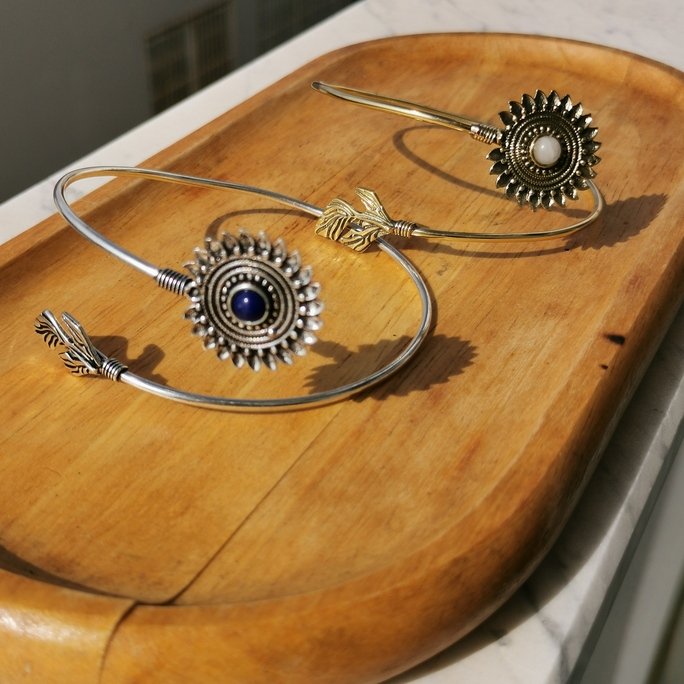 Questo solare bracciale Sun da braccio in ottone con pietre è un gioiello che celebra la potenza dell’astro luminoso. Il design solare in ottone lavorato artigianalmente è impreziosito da pietre naturali che aggiungono calore e colore.