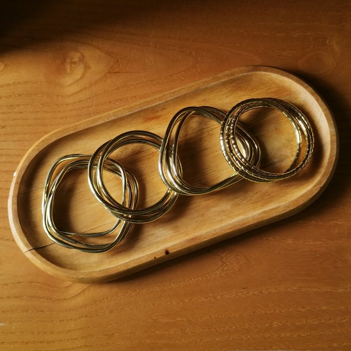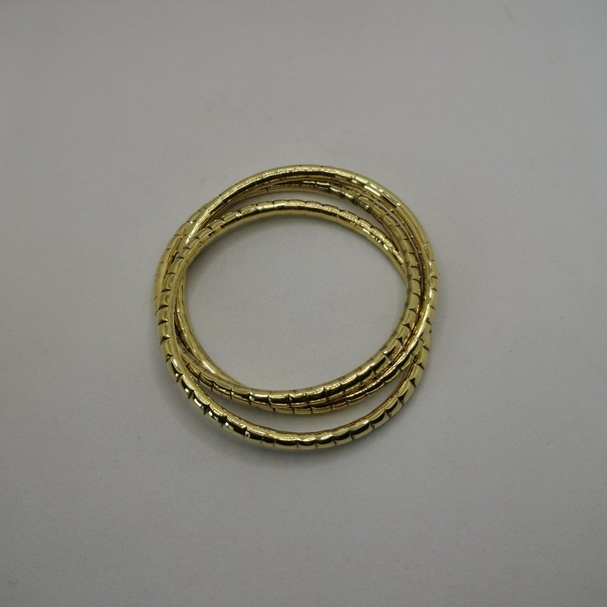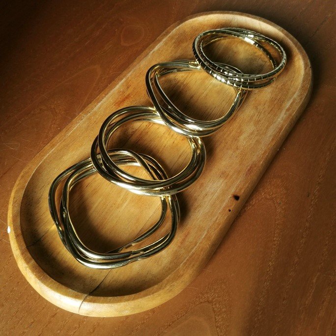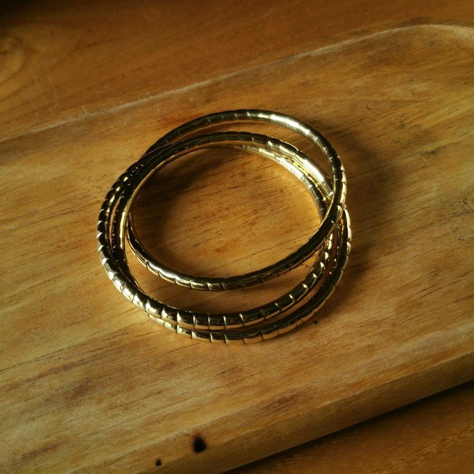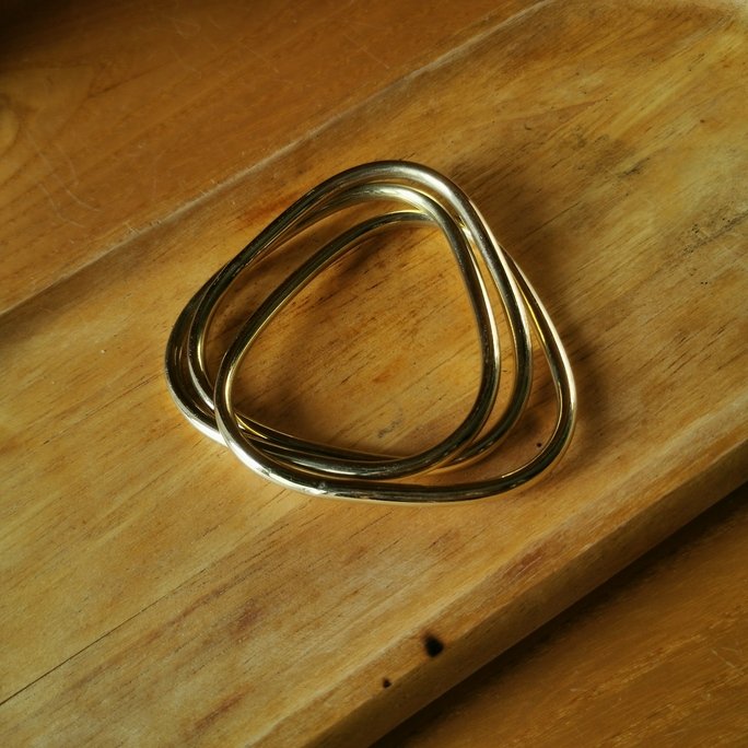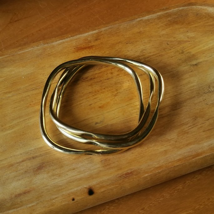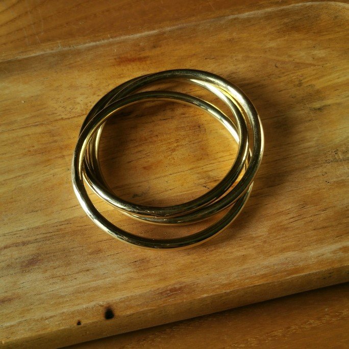 L’ottone lavorato a mano impiegato in questo bracciale è selezionato per la sua qualità superiore e lavorato per creare tre fasce che si avvolgono armoniosamente intorno al polso. L’effetto tris crea movimento e interesse visivo.
