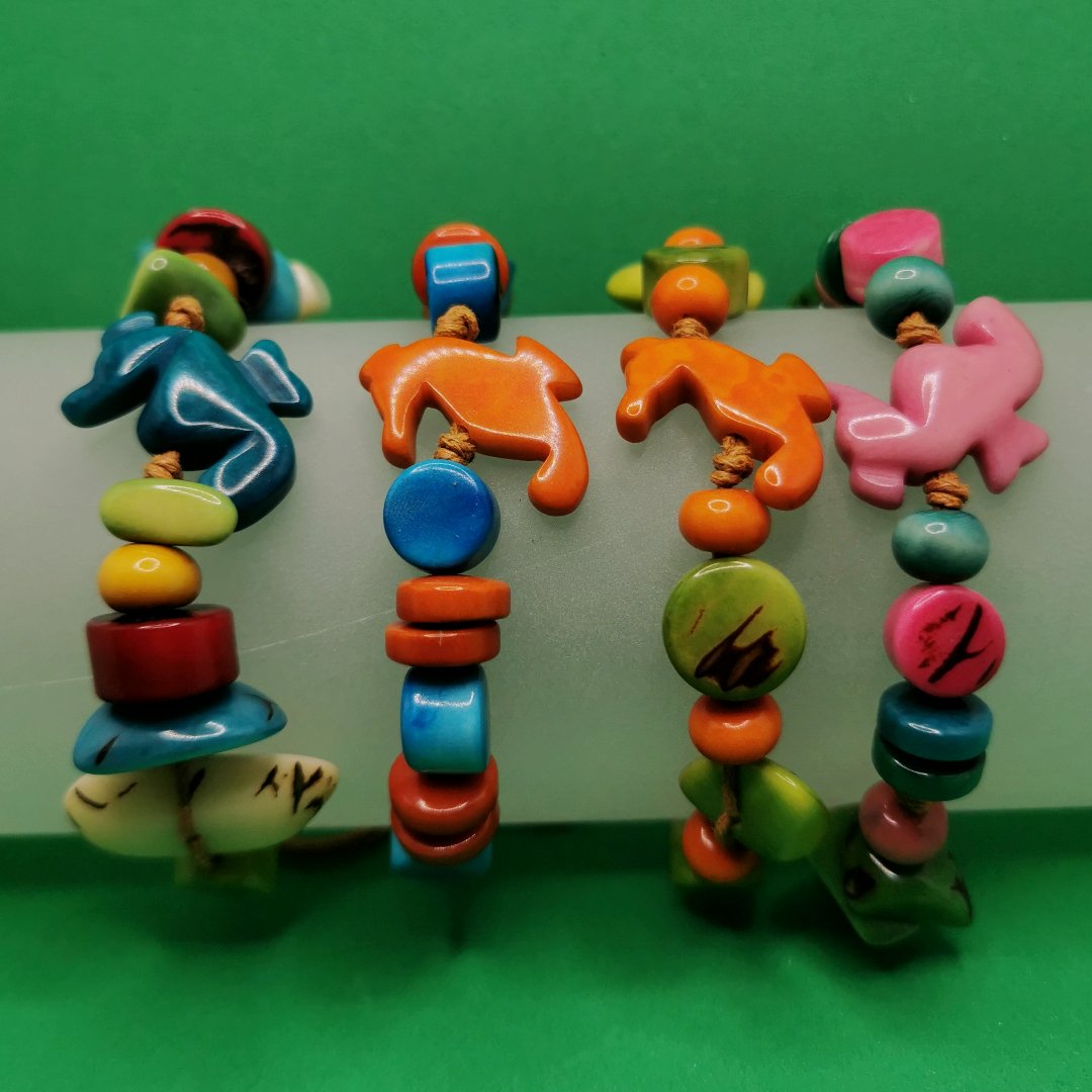 La lavorazione di questo pregiato bracciale segue tecniche antiche tramandate di generazione in generazione all’interno delle comunità artigiane. Gli artigiani selezionano con cura ogni seme, lo lasciano essiccare naturalmente per lunghi mesi, poi lo modellano e colorano interamente a mano con pazienza e dedizione. Il risultato finale è un gioiello che porta con sé l’energia delle foreste tropicali, il calore delle mani che l’hanno creato, e la magia di un materiale antico e sempre attuale.