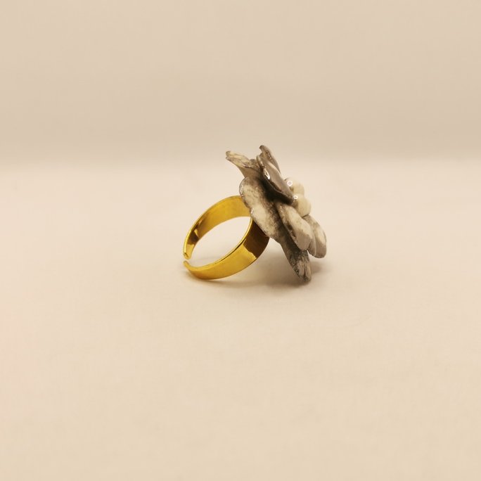 ceramic, handmade, ring, adjustable, grigio, fiore