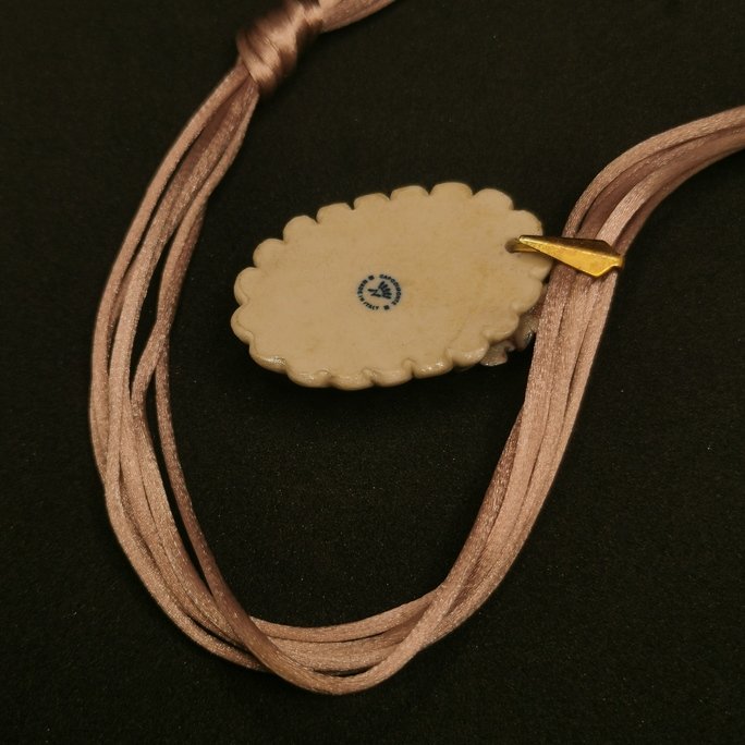 Romantico gioiello Ceramic con fiore rosa ornamentale. Creazione artigianale che fonde la dolcezza della ceramica rosa all’ottone.