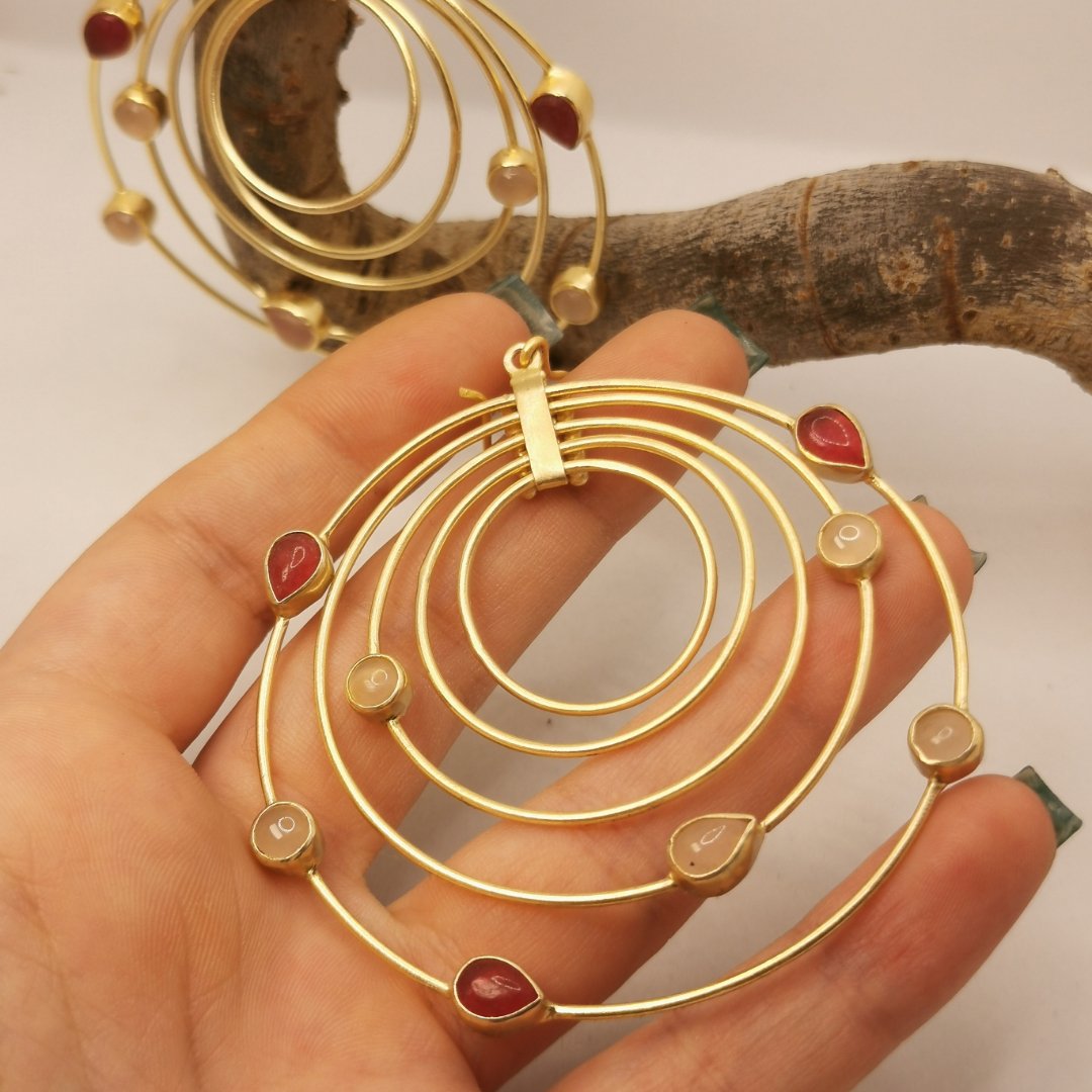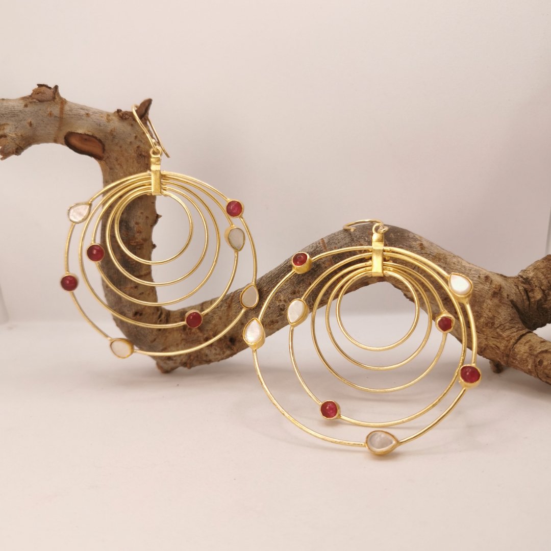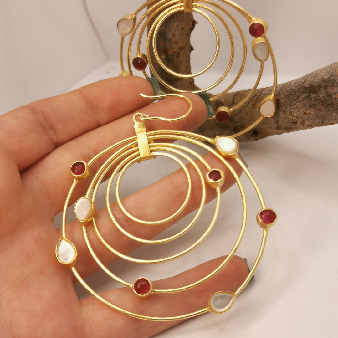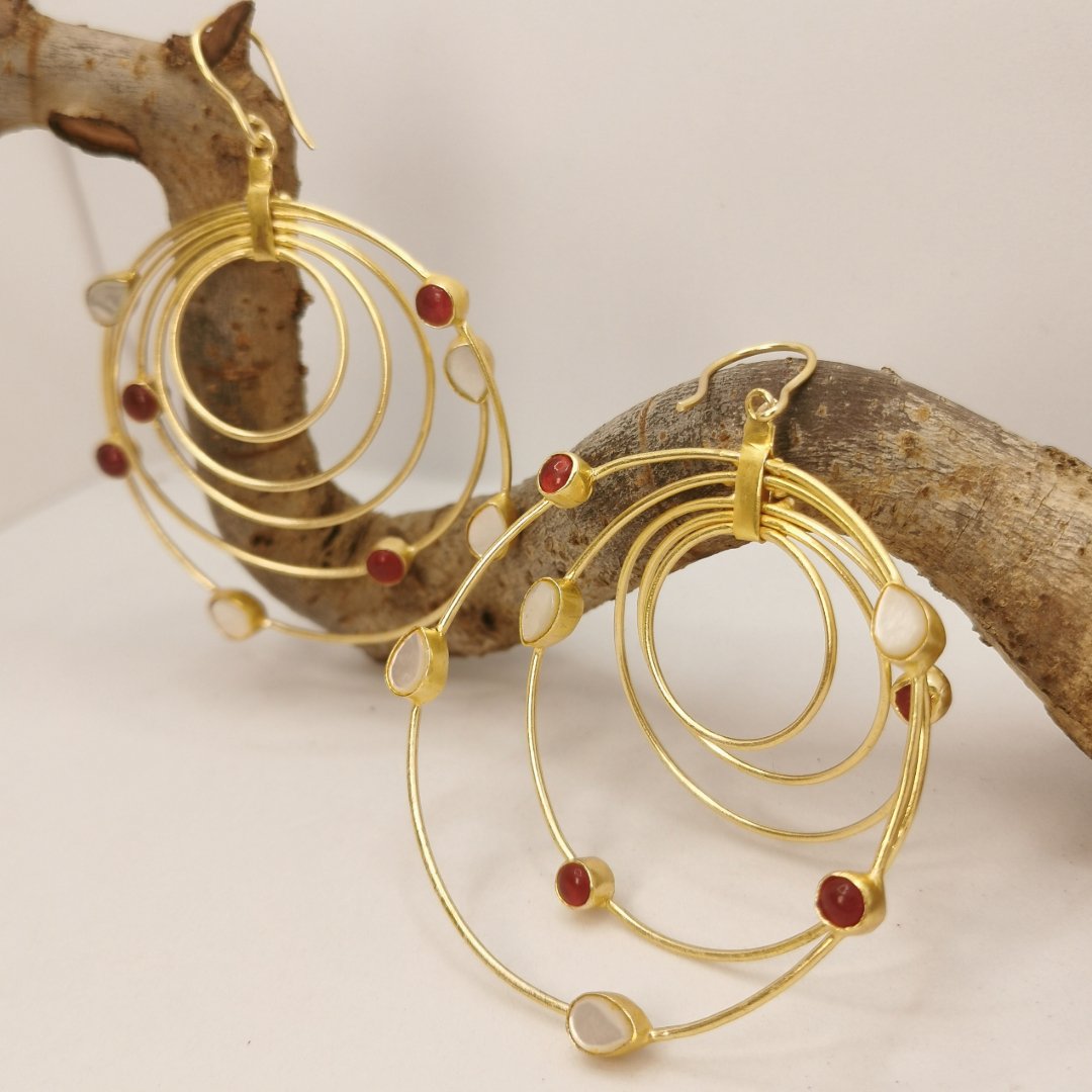 Orecchini in Ottone placcati oro 24K con Agata, Quarzo e Madreperla