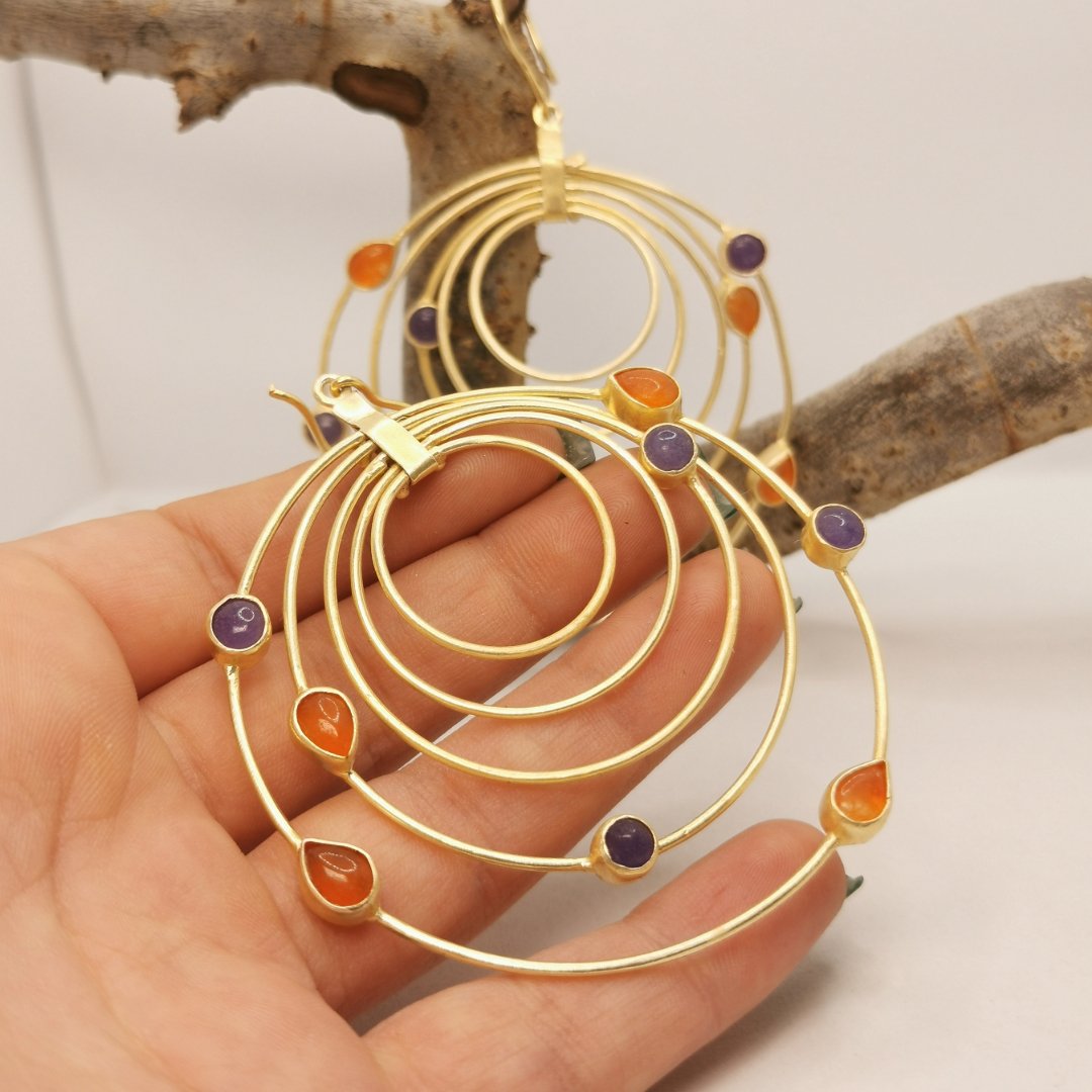 Ottone, brass, gold, oro, pietre naturali, stone, stones, natural, agata, artigianale, handmade, earrings, earring, orecchini, orecchino, natural stone, pietre naturali