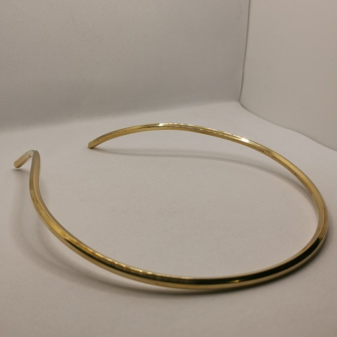 L’ottone lavorato a mano utilizzato per questo choker è selezionato per la sua qualità superiore e lavorato con tecniche che ne esaltano la lucentezza. La struttura abbraccia il collo con precisione, creando un effetto di elegante aderenza.