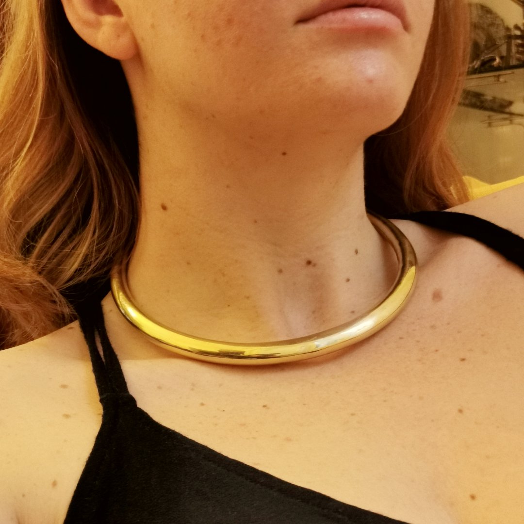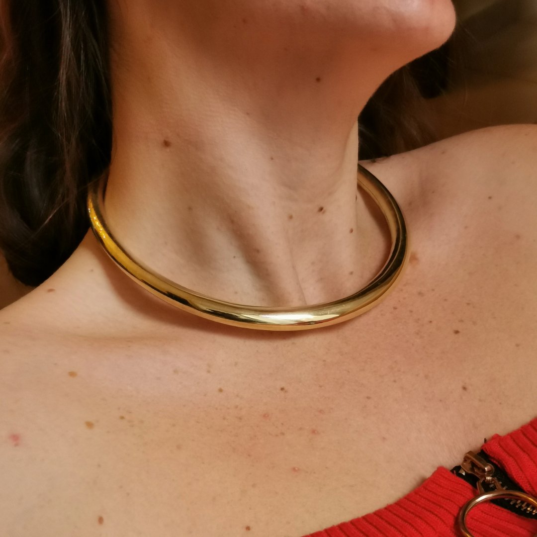 L’ottone lavorato a mano impiegato in questo choker è di qualità superiore e viene modellato con maestria artigianale. Ogni incisione e ogni dettaglio testimoniano l’abilità manuale e l’attenzione dedicata alla realizzazione di questo pezzo unico.