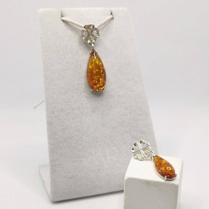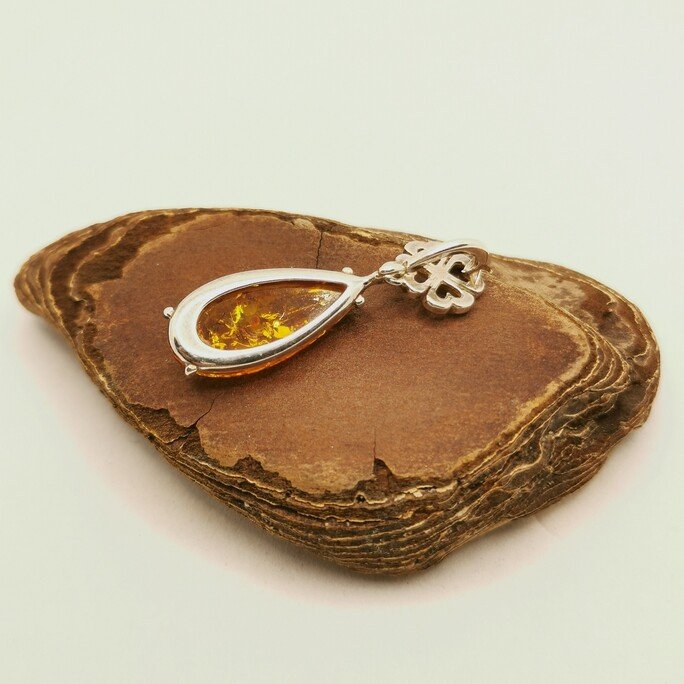 La forma a goccia dell’ambra è un omaggio alla sua nascita. L’argento 925 925 la sostiene rispettando la silhouette naturale.