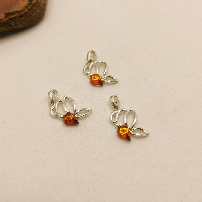 L’ambra luminosa è il corpo della lucciola, mentre l’argento 925 925 forma ali e antenne delicate. Un gioiello che porta luce ovunque.