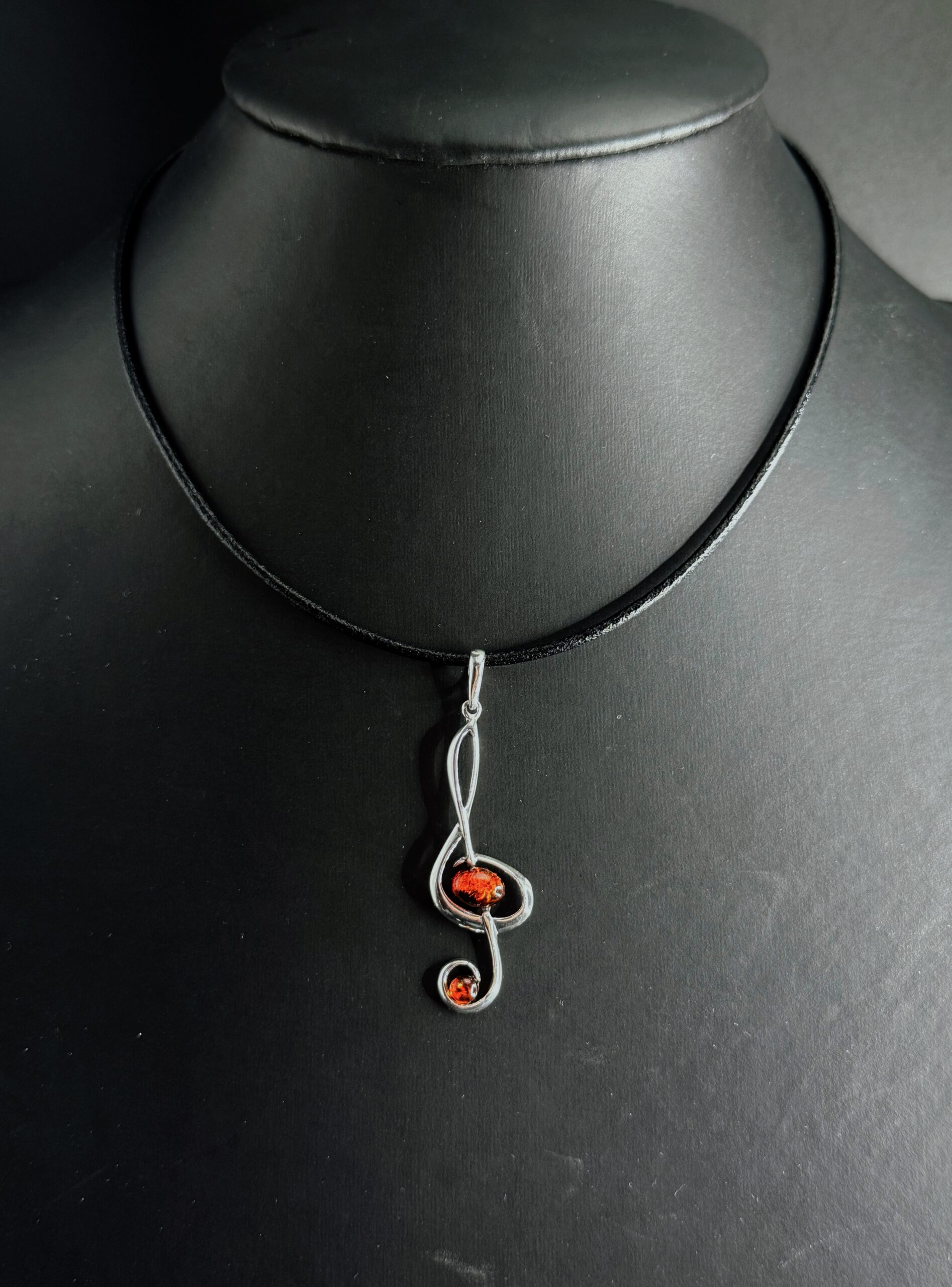 Ciondolo argento 925 con ambra baltica design note musicali. Chiave di violino, doppia nota, singola nota. Personalizzabile con collane a scelta.