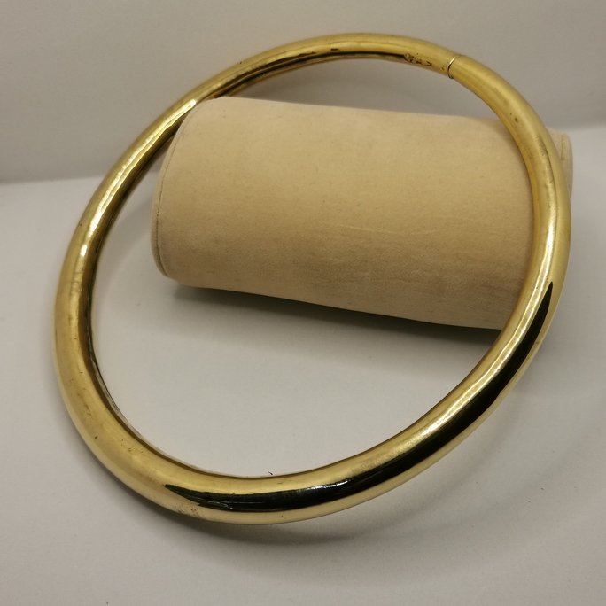 Intramontabile choker in ottone classico in ottone puro. Gioiello artigianale che abbraccia il collo con eleganza minimale e raffinata.