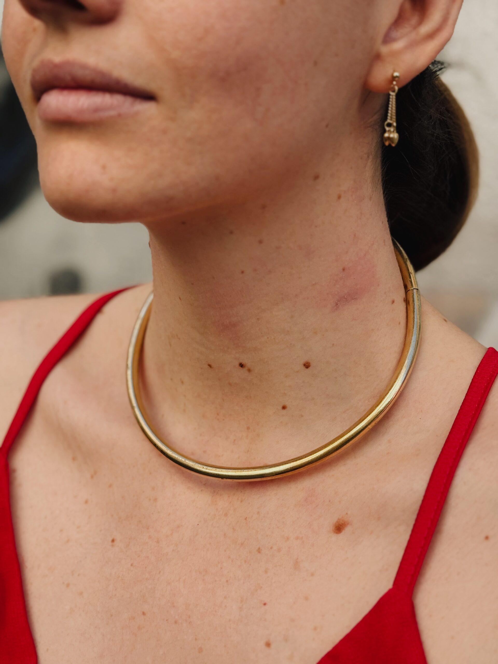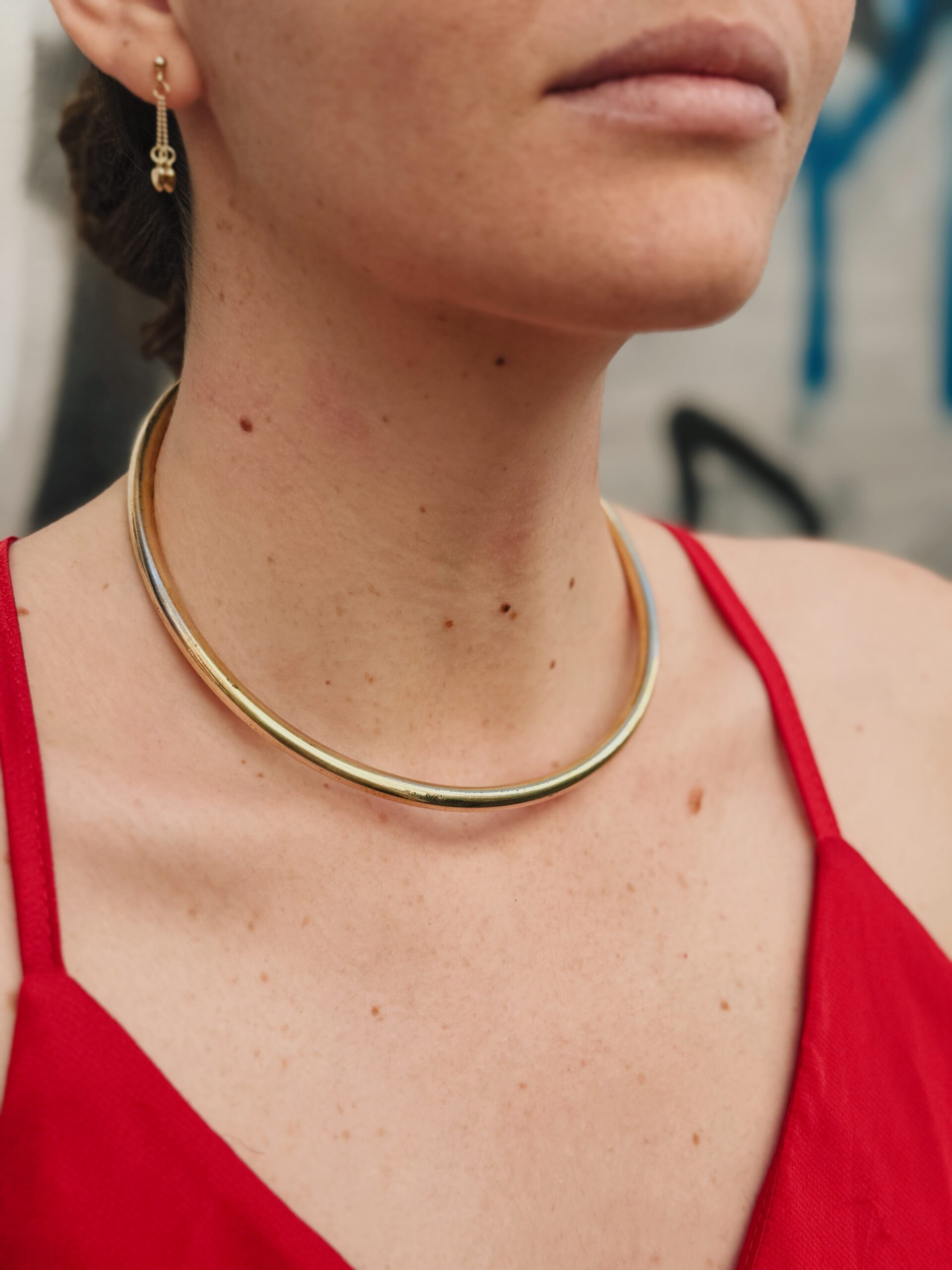 Elegante collana in ottone collare classico in ottone. Gioiello artigianale che adorna il collo con presenza sofisticata e senza tempo.