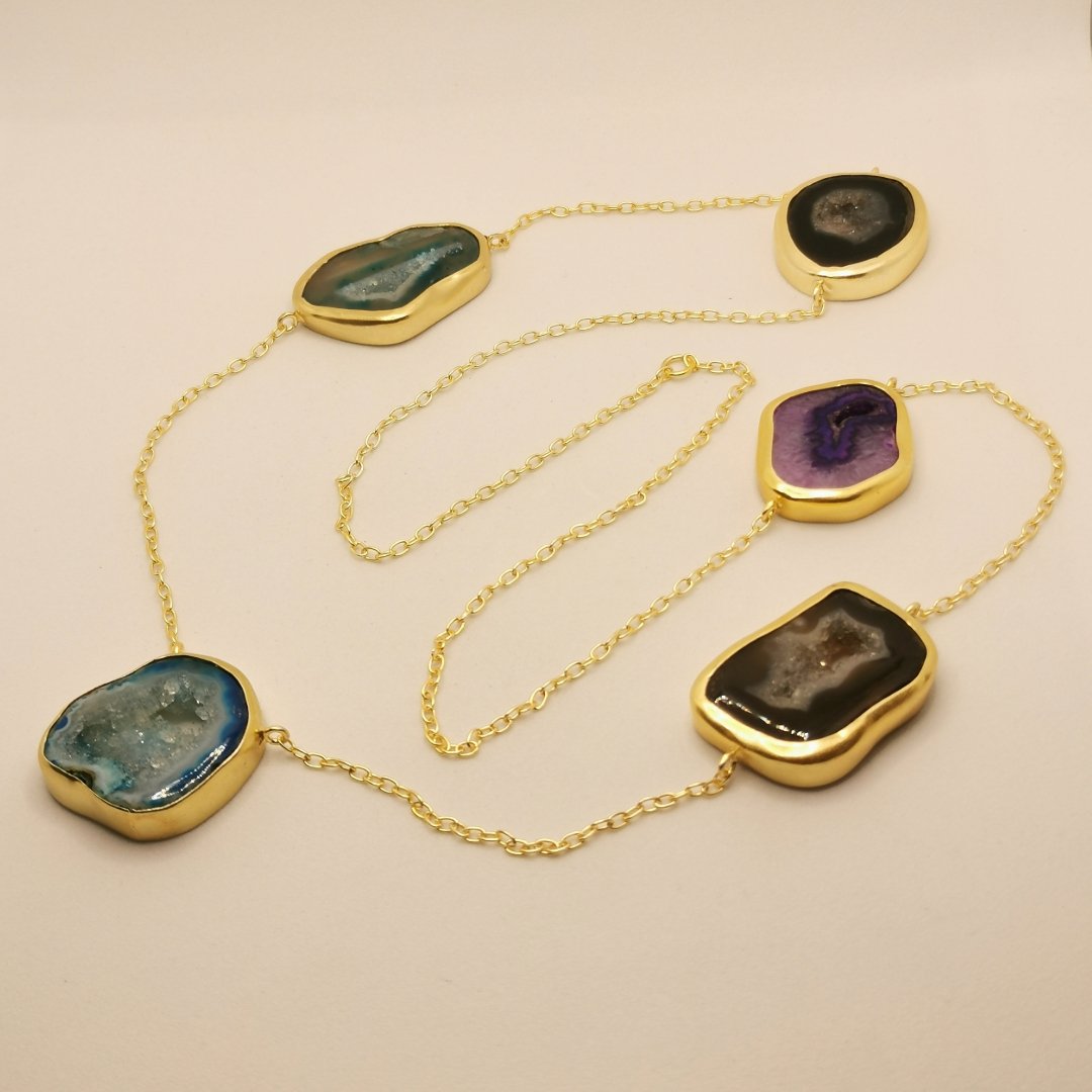 Collana in Ottone placcato oro 24K con sezioni di Agata