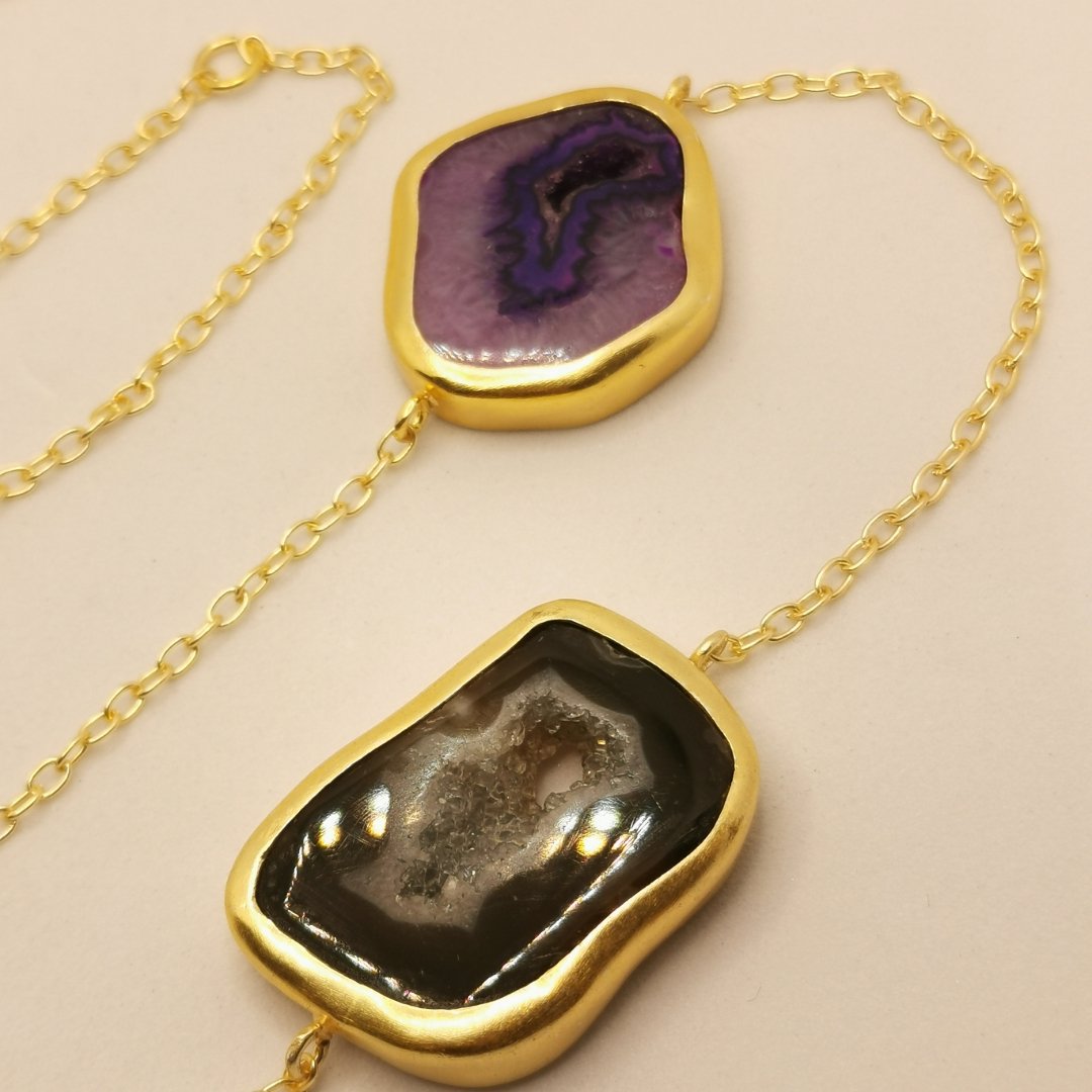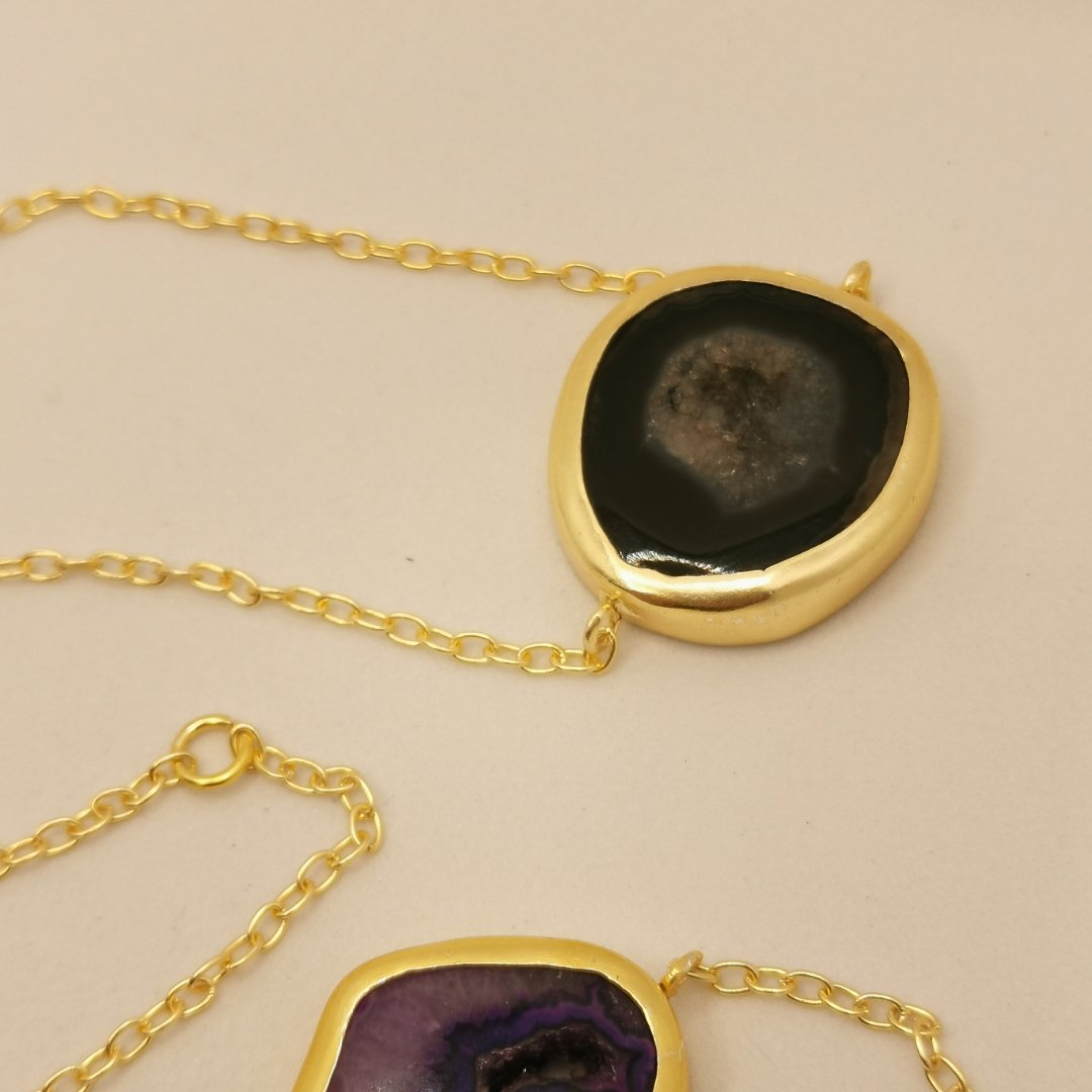 Collana in Ottone placcato oro 24K con sezione di Agata