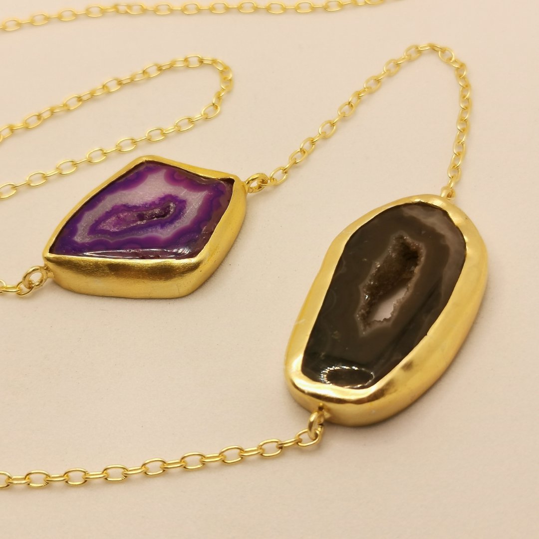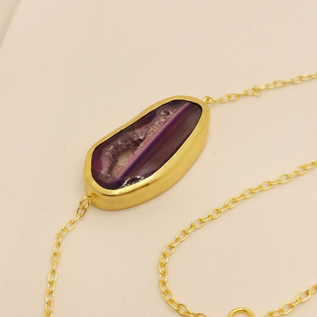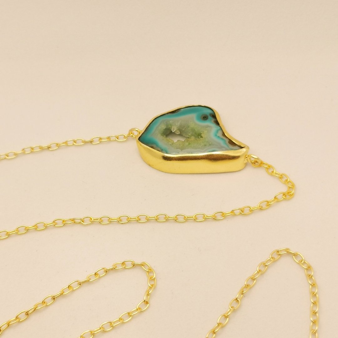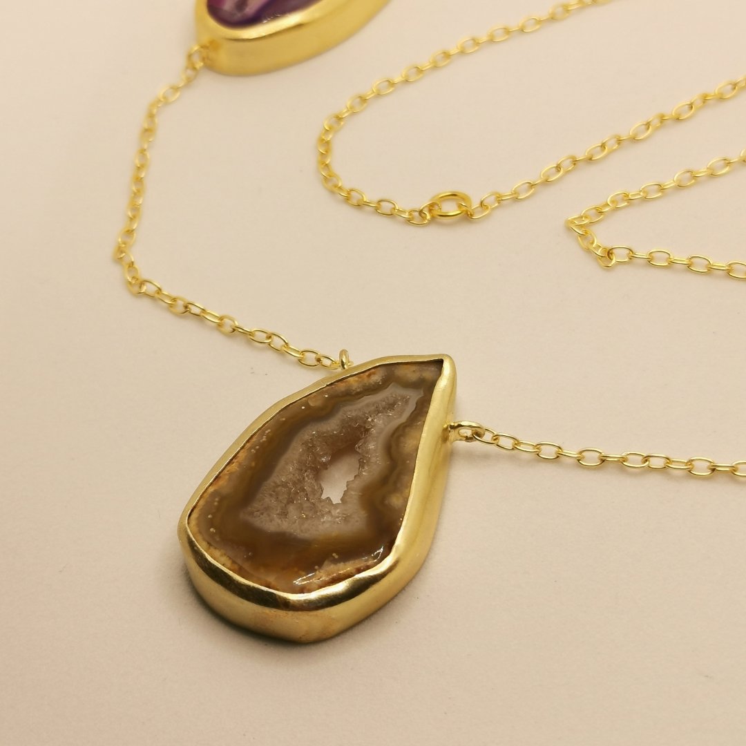 Collana in Ottone placcato oro 24K con sezione di Agata