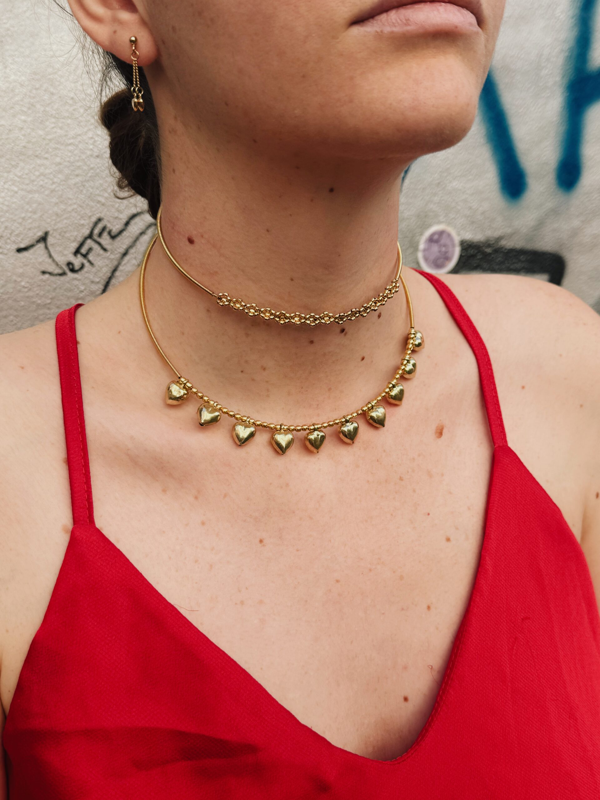 Flessibile collare in ottone elastico in ottone adattabile. Gioiello artigianale che si adatta al collo con comfort e stile versatile.