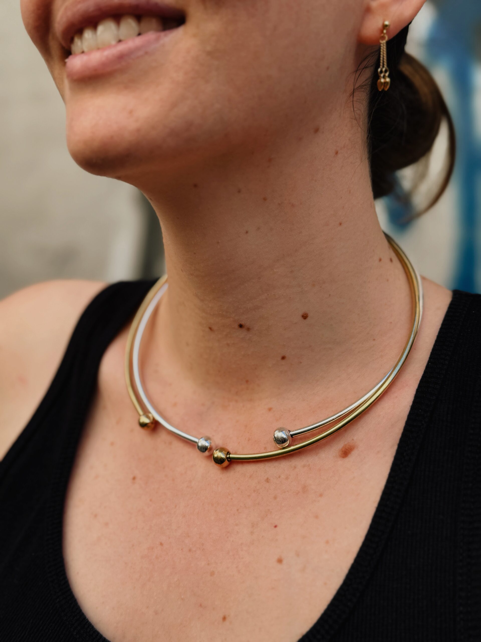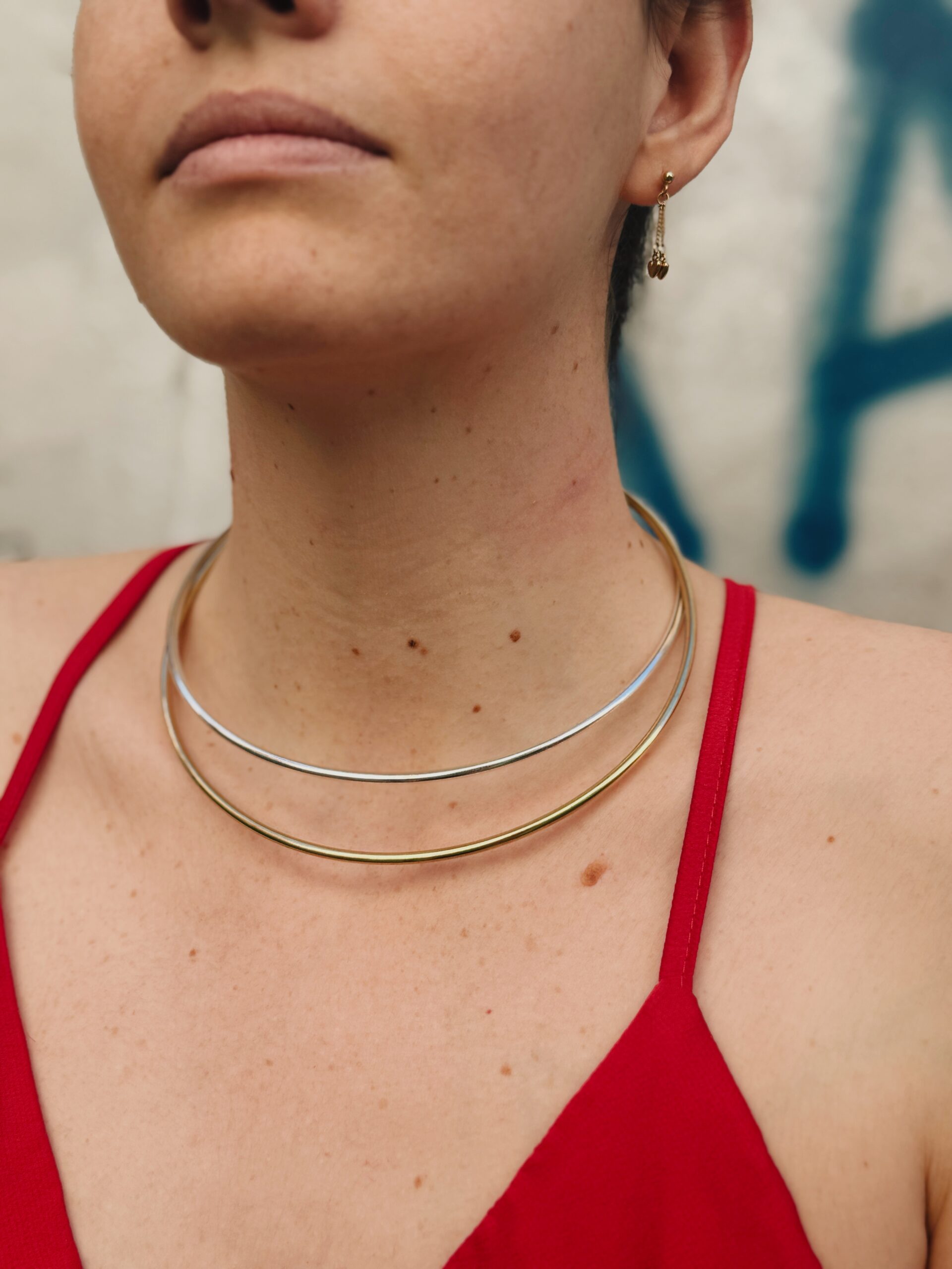 Acquistando questo gioiello artigianale scegli la purezza della forma. Ogni collare viene realizzato con attenzione alla perfezione del filo, garantendo un accessorio che incarna l’eleganza del minimalismo.