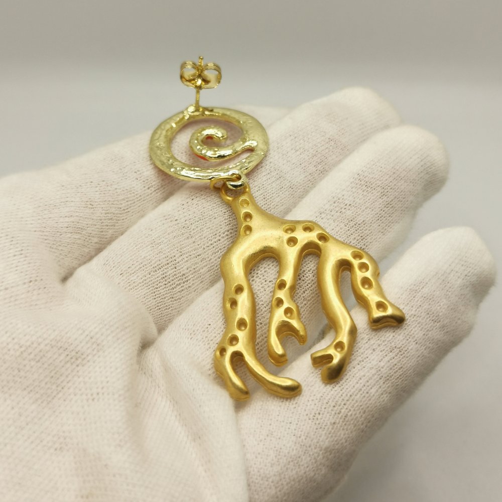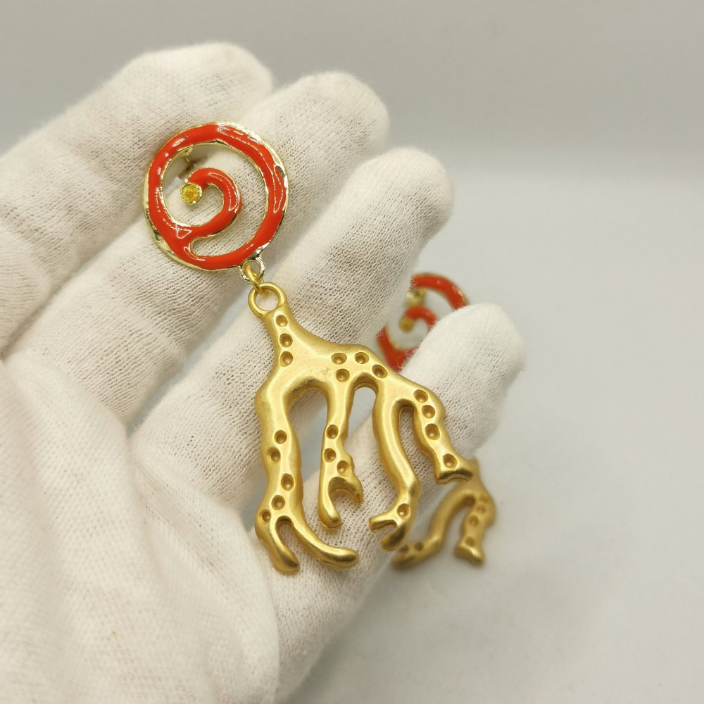 Elegante orecchini dalla forma a corallo in lega di zama, impreziositi da una finitura dorata, con chiusura a farfallina. Un accessorio dal carattere deciso che sa distinguersi con eleganza.
