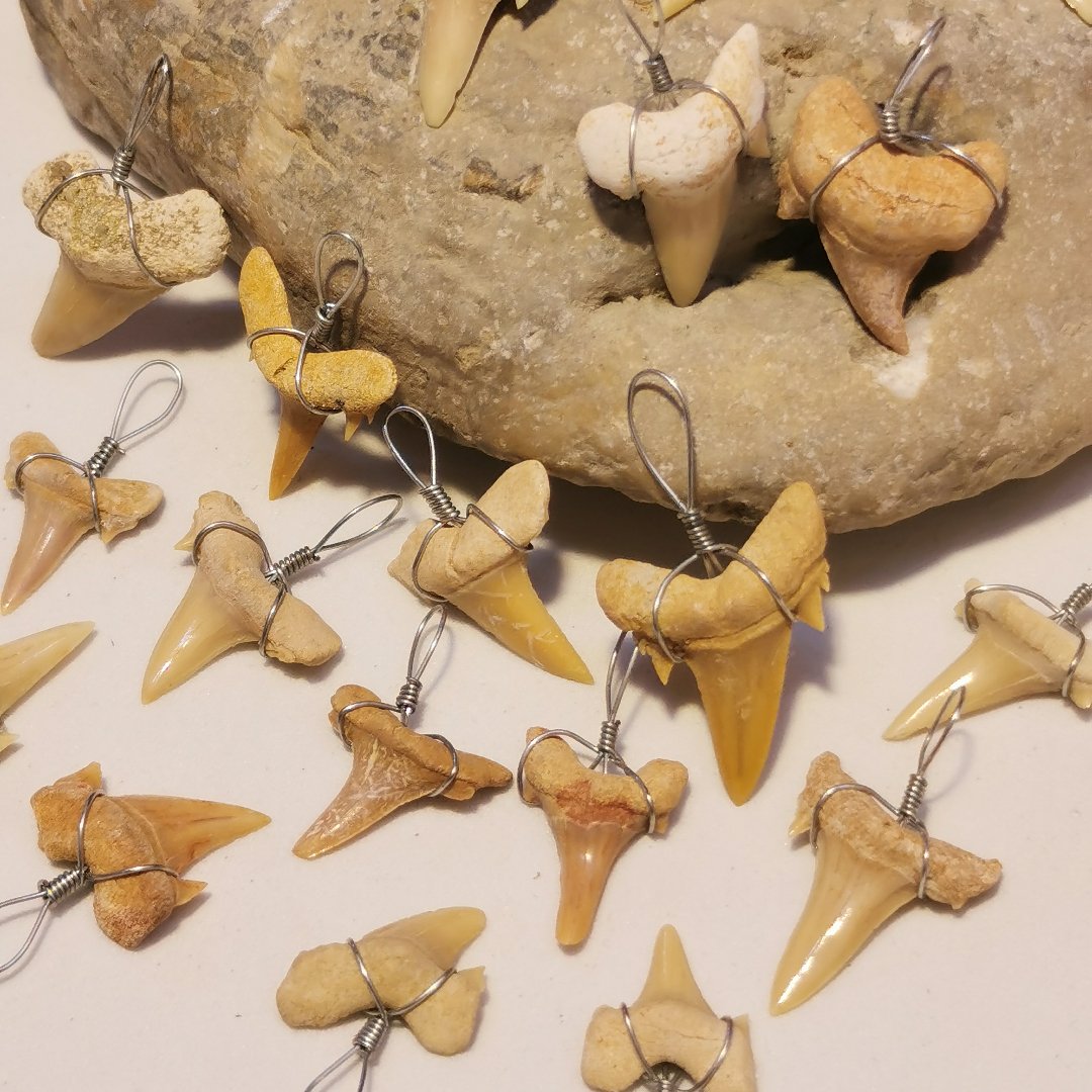 Ciondolo in acciaio con dente fossile piccolo ( ~ 2 cm )