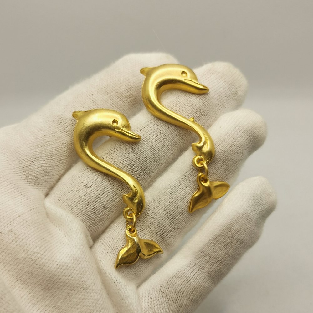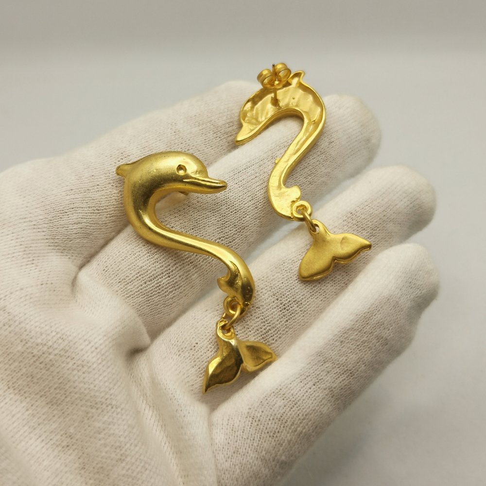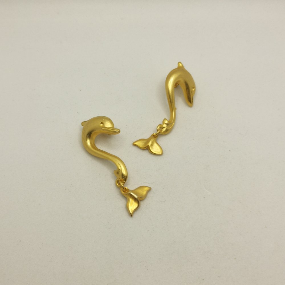 orecchini a forma di delfino con ciondolo a coda di balena realizzati in lega di zama con finitura dorata, con chiusura a farfallina.