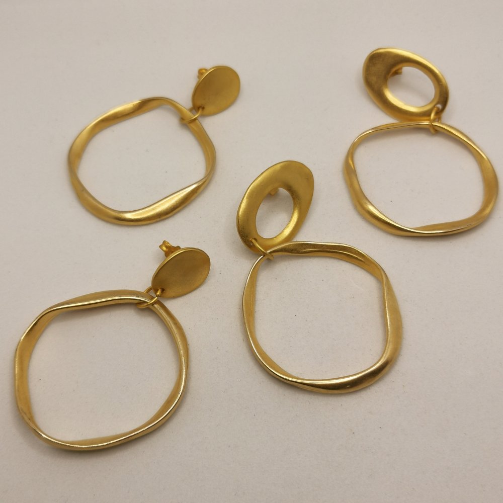 Questi Double earrings incarnano l’essenza dello stile contemporaneo. Realizzati in lega di zama con una raffinata finitura dorata che cattura la luce, questi orecchini nascono dalla sapiente lavorazione artigianale che caratterizza ogni nostra creazione. Il design è stato pensato per chi desidera accessori capaci di raccontare una storia, pezzi unici che sanno farsi notare senza mai risultare eccessivi.