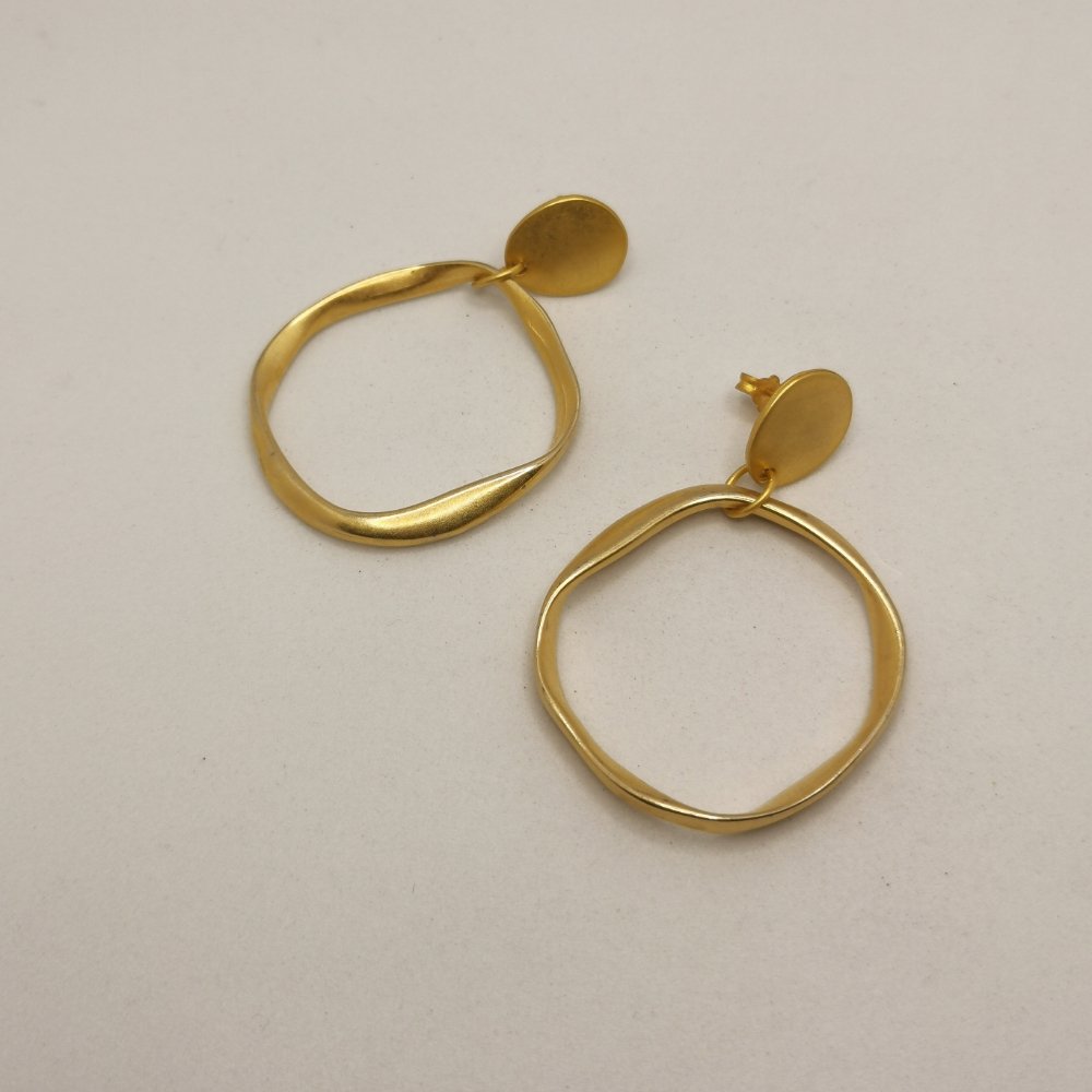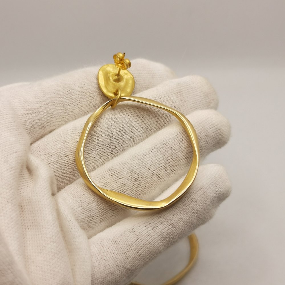 orecchini dalla forma cerchio martellati realizzati in lega di zama con finitura dorata, con chiusura a farfallina. Un tocco di stile che illumina ogni outfit con discrezione.