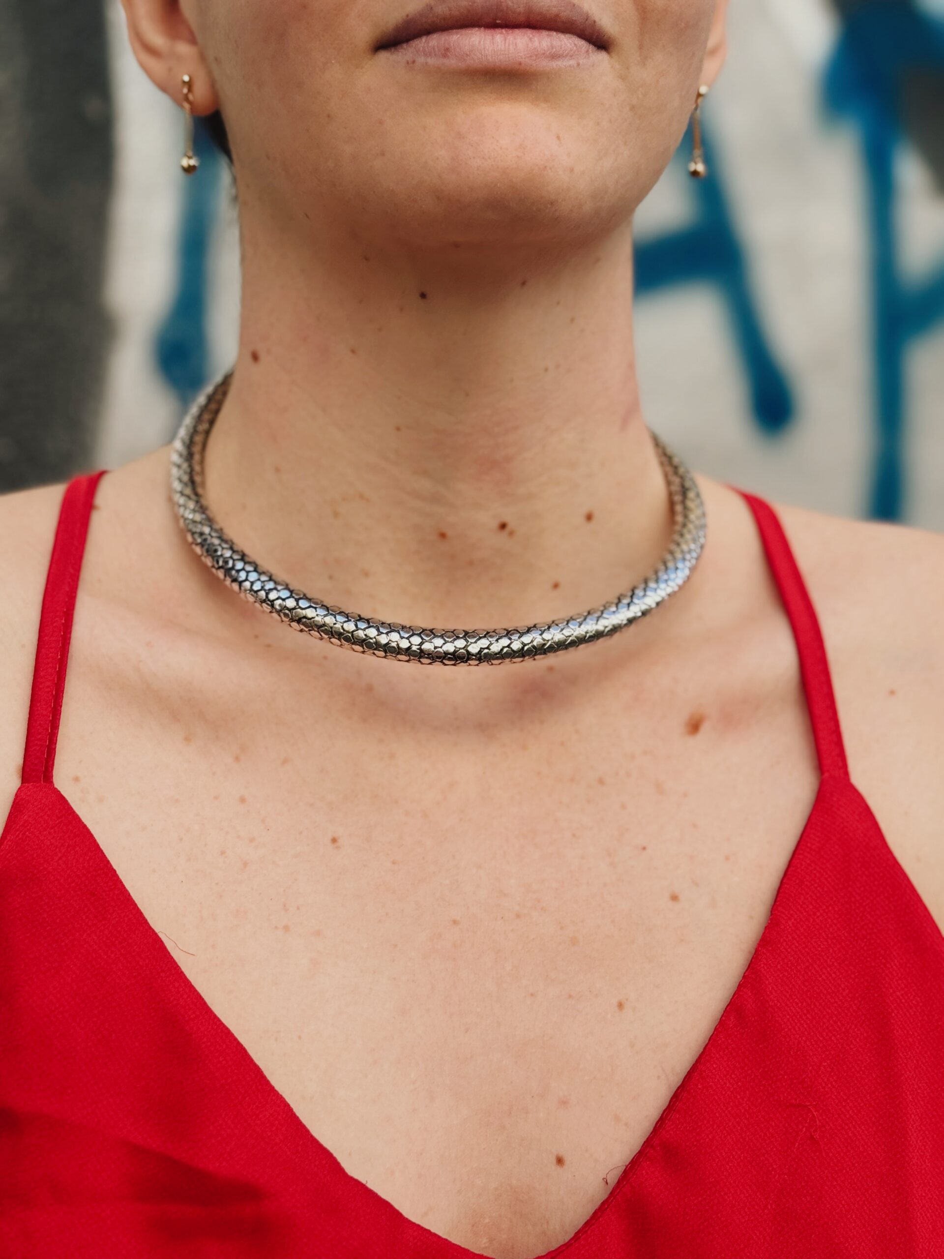 Questo collare è perfetto per chi desidera accessori dal forte carattere simbolico. Ideale per occasioni che richiedono presenza scenica e per chi non teme di indossare gioielli che fanno dichiarazioni audaci.