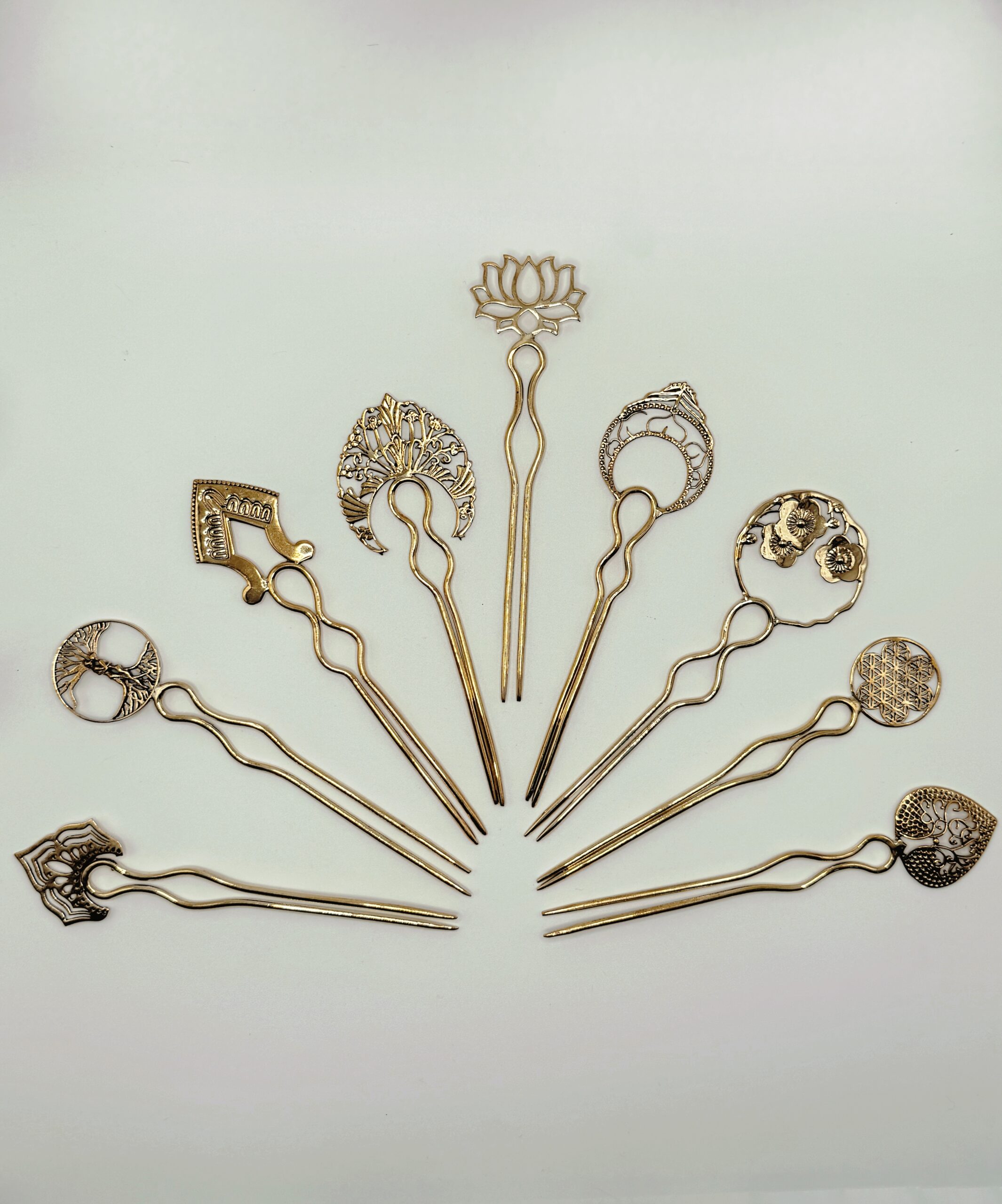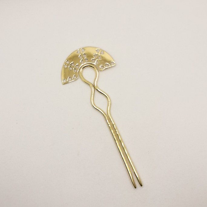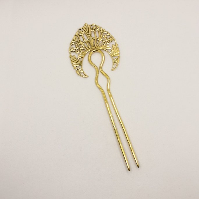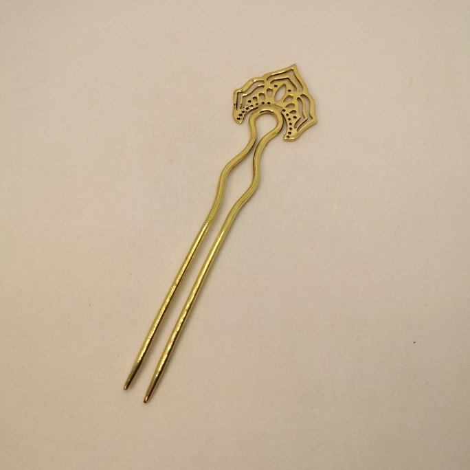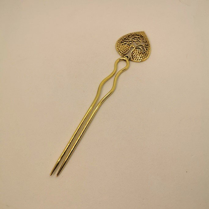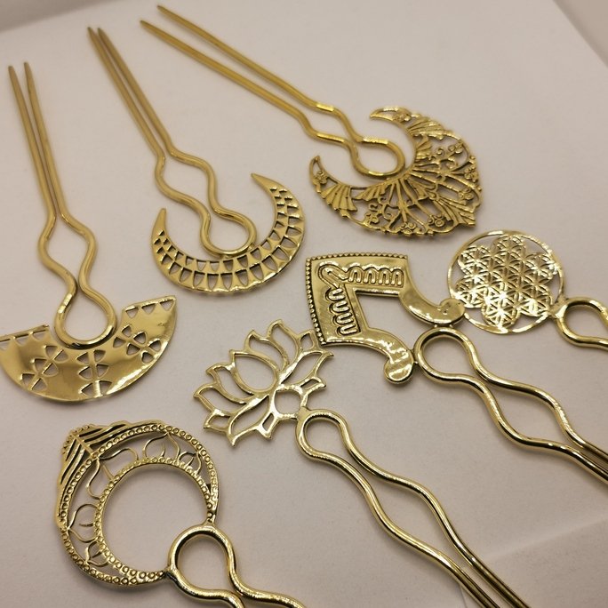 Eleganti spilloni fermacapelli in ottone puro. Accessori artigianali che impreziosiscono le acconciature con la bellezza del metallo lavorato.