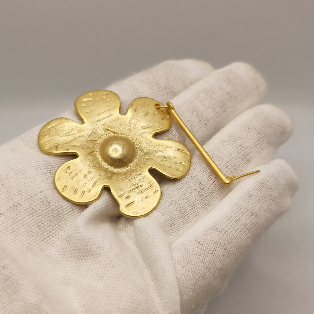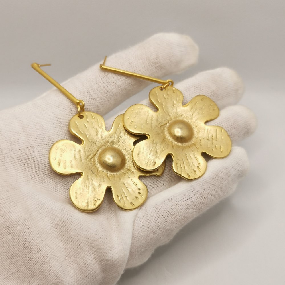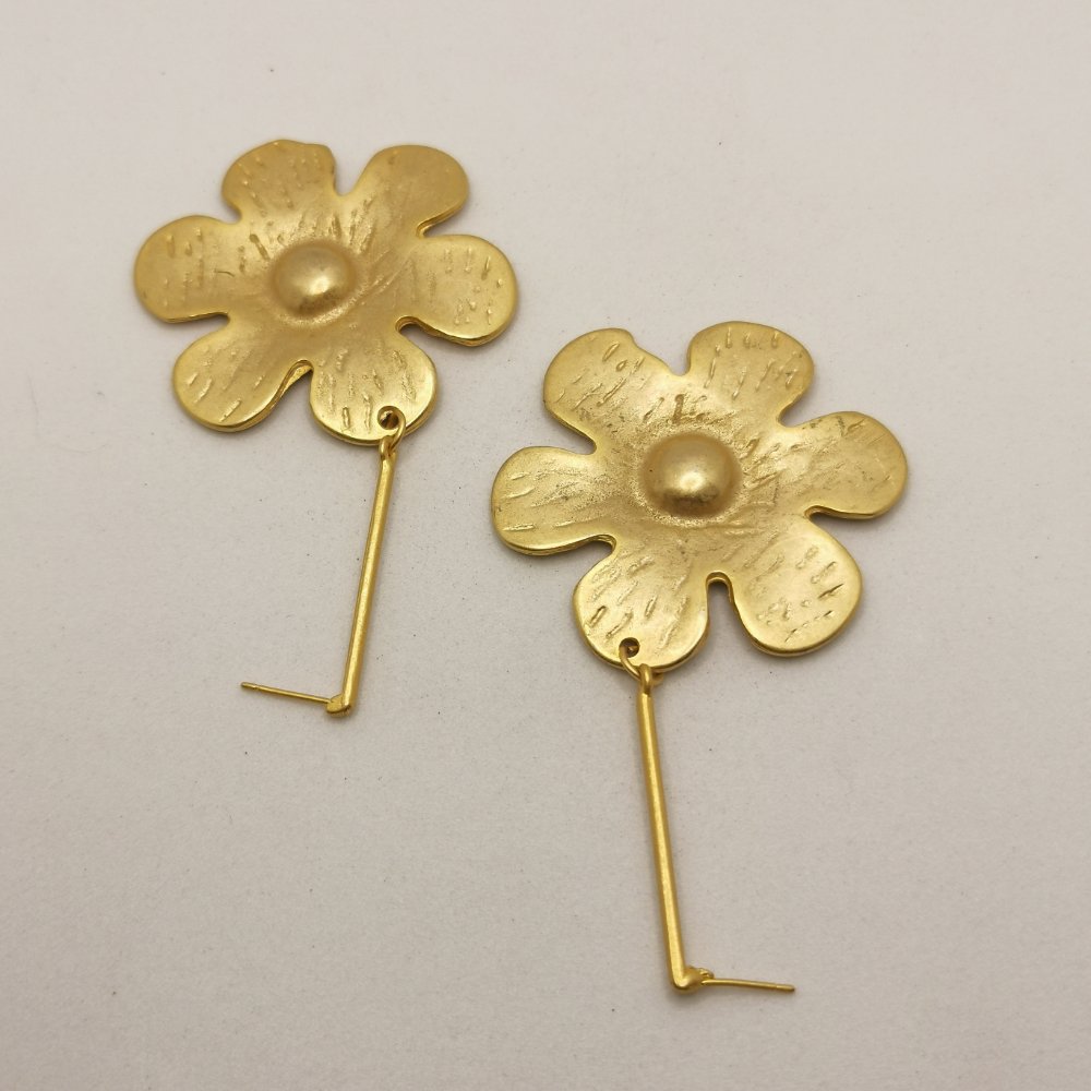 Questi Flower pendants incarnano l’essenza dello stile contemporaneo. Realizzati in lega di zama con una raffinata finitura dorata che cattura la luce, questi orecchini nascono dalla sapiente lavorazione artigianale che caratterizza ogni nostra creazione. Il design è stato pensato per chi desidera accessori capaci di raccontare una storia, pezzi unici che sanno farsi notare senza mai risultare eccessivi.