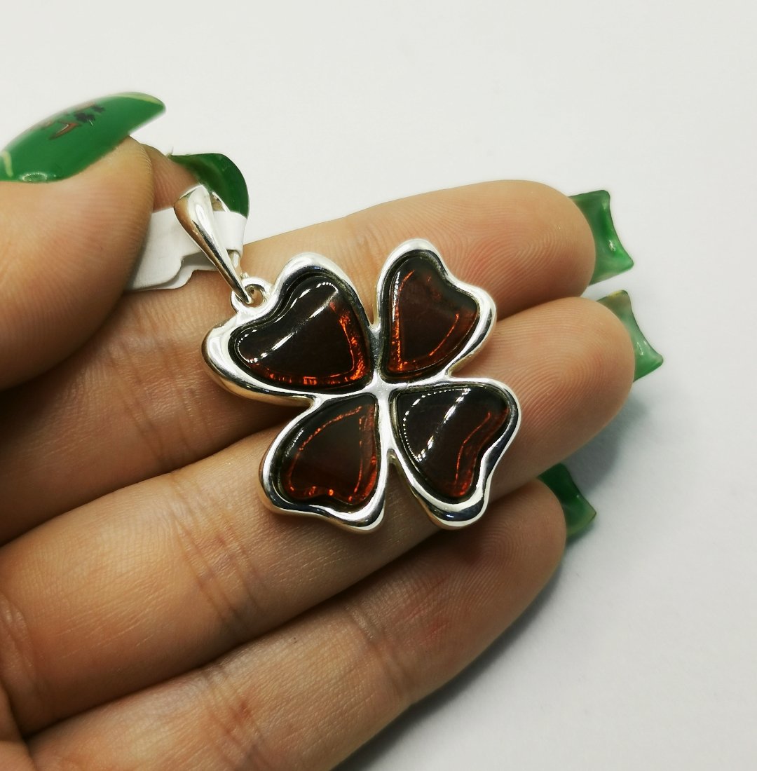 Ciondolo Quadrifoglio in Ambra Baltica portafortuna.