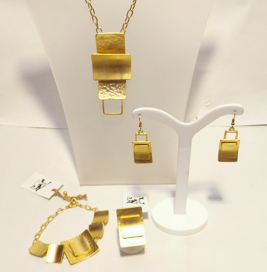 Questo Geometric set – etnic style incarna l’essenza dello stile contemporaneo. Realizzato in lega di zama con una raffinata finitura naturale dalle sfumature calde, questo set nasce dalla sapiente lavorazione artigianale che caratterizza ogni nostra creazione. Parte della collezione Alibi, Il design è stato pensato per chi desidera accessori capaci di raccontare una storia, pezzi unici che sanno farsi notare senza mai risultare eccessivi.