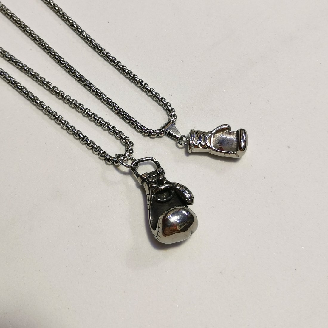 Ciondolo guantone da boxe in acciaio per gli appassionati del pugilato. Un simbolo di forza, determinazione e spirito combattivo in un accessorio dal design iconico.