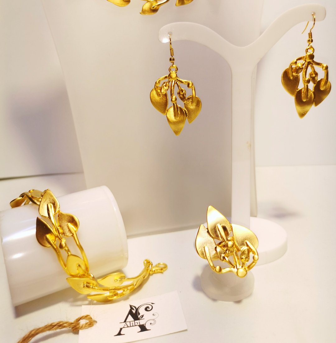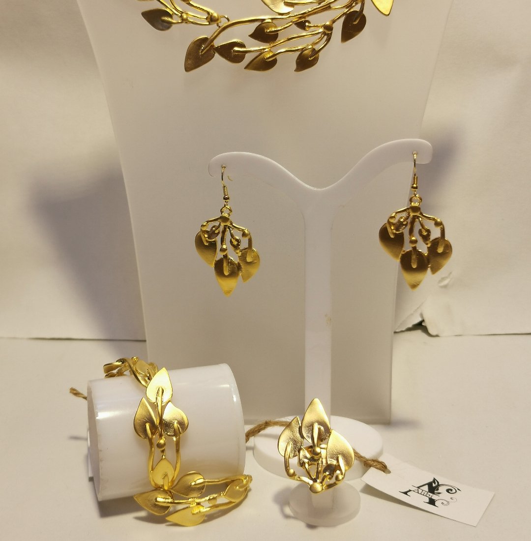 Questo Leaves set – etnic style incarna l’essenza dello stile contemporaneo. Realizzato in lega di zama con una raffinata finitura naturale dalle sfumature calde, questo set nasce dalla sapiente lavorazione artigianale che caratterizza ogni nostra creazione. Parte della collezione Alibi, Il design è stato pensato per chi desidera accessori capaci di raccontare una storia, pezzi unici che sanno farsi notare senza mai risultare eccessivi.